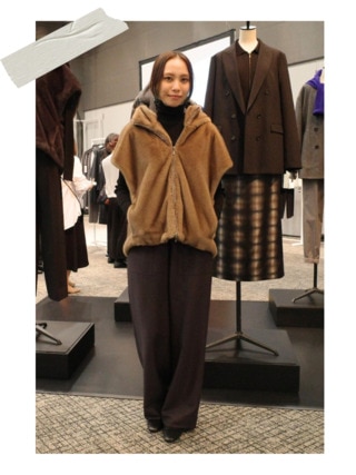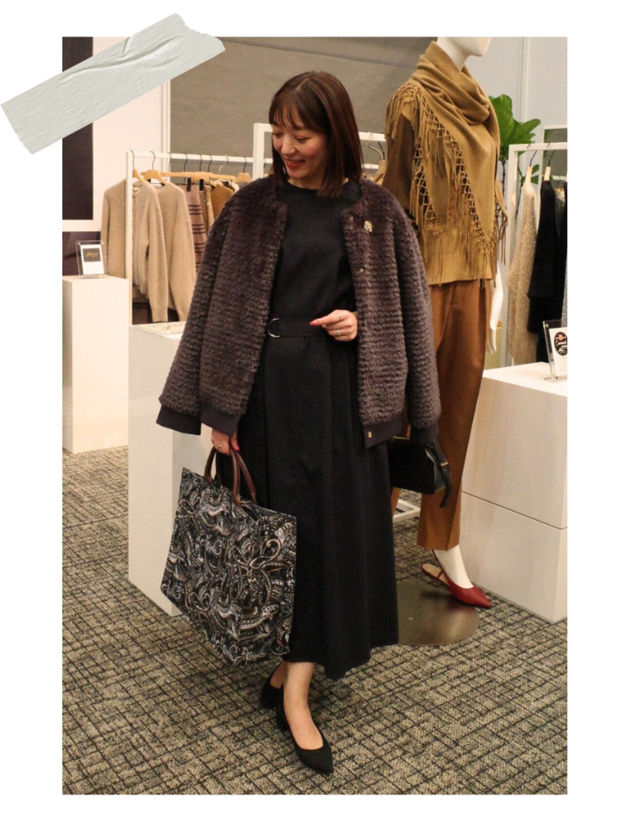旬のブラウンカラーにマットサテンのMA-1を羽織って、さりげなく差が付くキレイめコーデを意識しました。(販促担当・160cm)