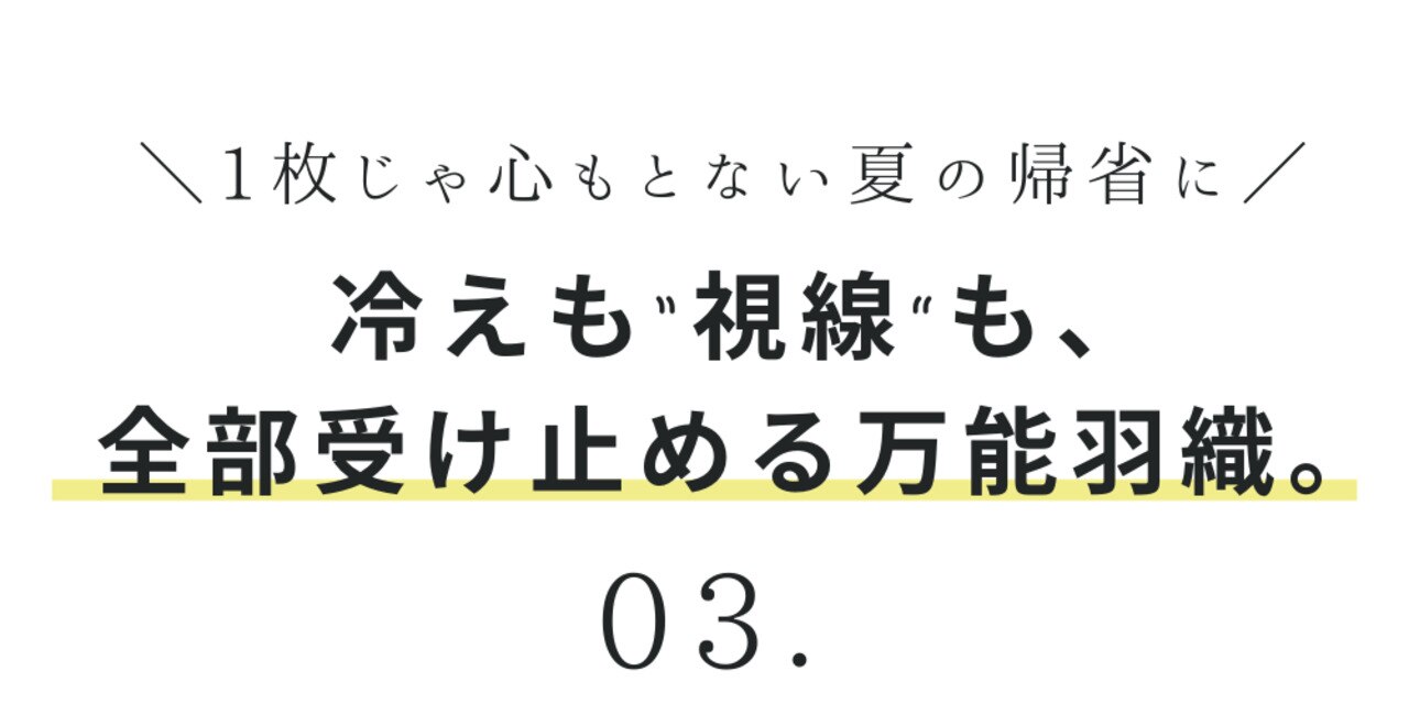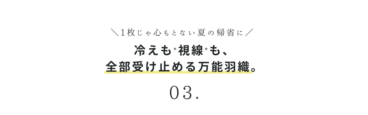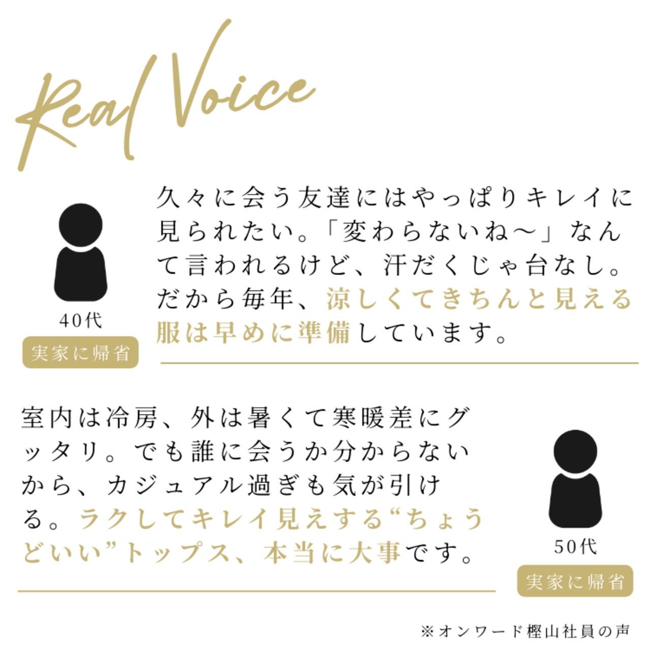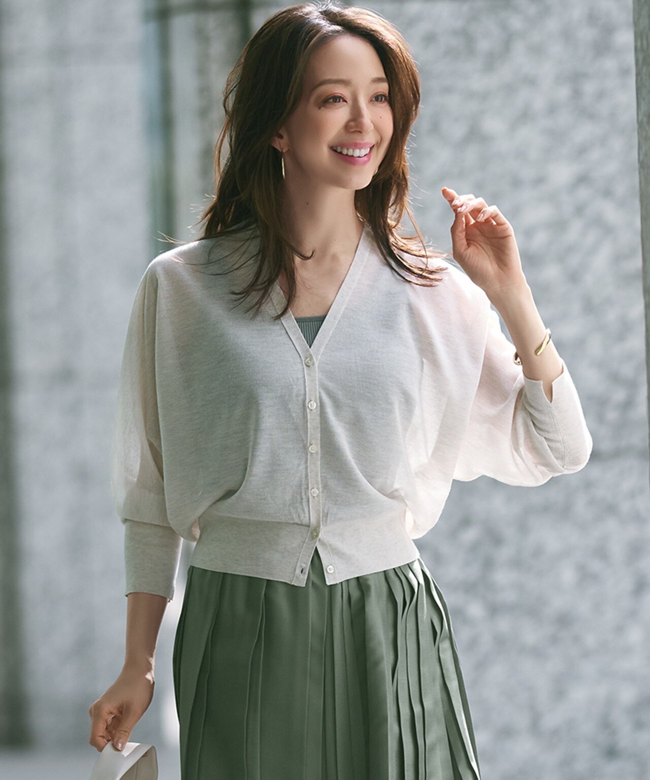 夏の帰省は、気温も予定もコロコロ変わるもの。そんな時に頼りになるのが、即羽織れるカーディガン。微光沢のシアー素材で、品よく今っぽい仕上がりに。通気性・吸湿性にも優れ、冷房の冷えもまとめてカバー。義両親や親戚の前でも安心して着られる、まさに帰省の“お守り”アイテム。