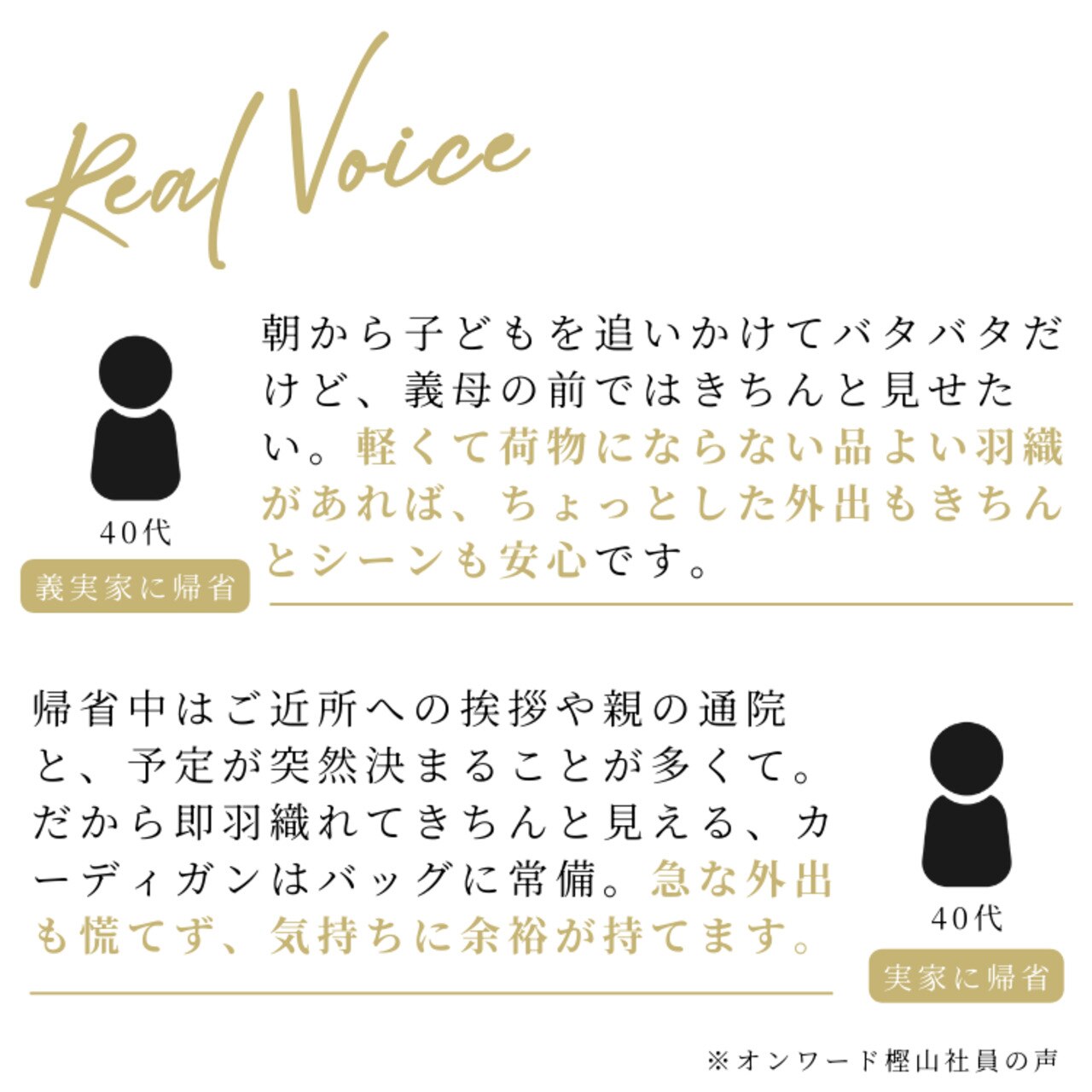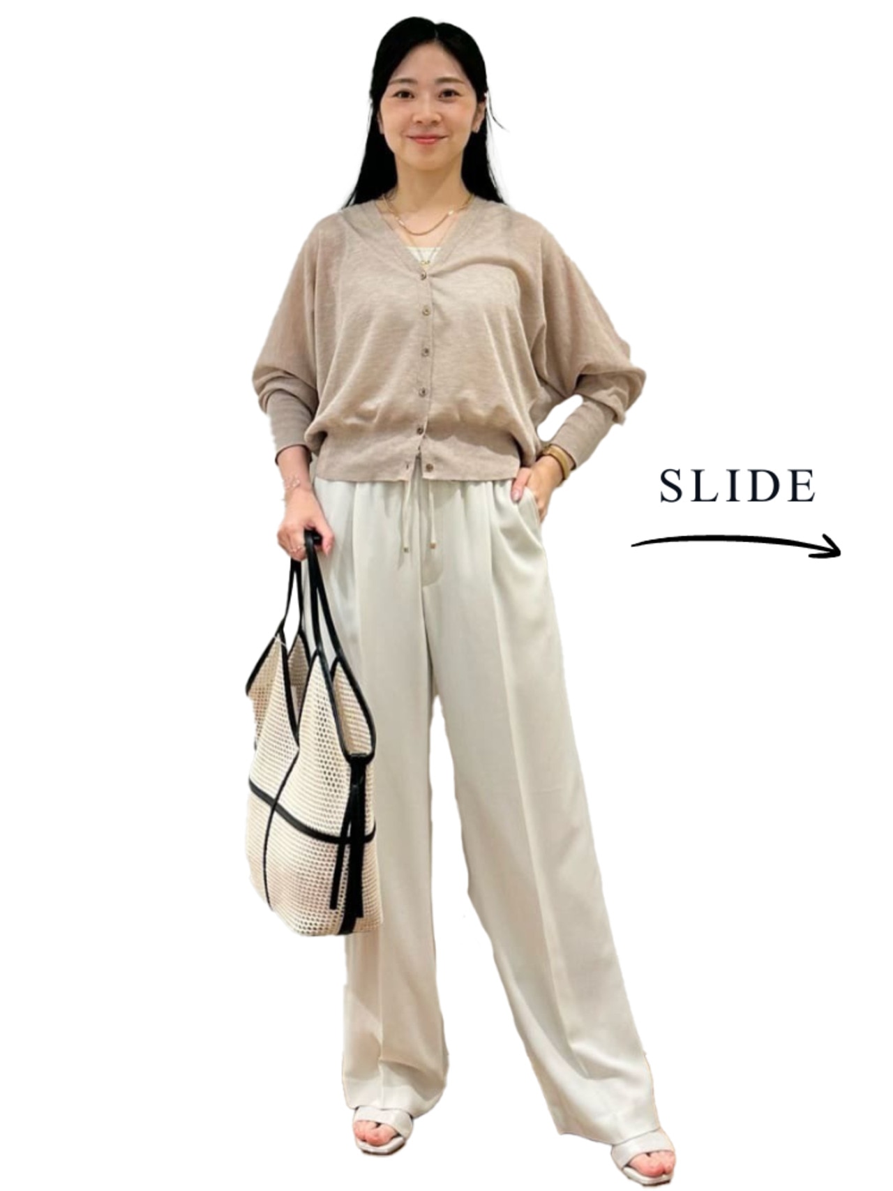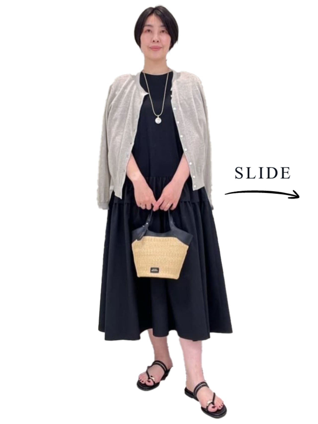 夏の帰省は、気温も予定もコロコロ変わるもの。そんな時に頼りになるのが、即羽織れるカーディガン。微光沢のシアー素材で、品よく今っぽい仕上がりに。通気性・吸湿性にも優れ、冷房の冷えもまとめてカバー。義両親や親戚の前でも安心して着られる、まさに帰省の“お守り”アイテム。