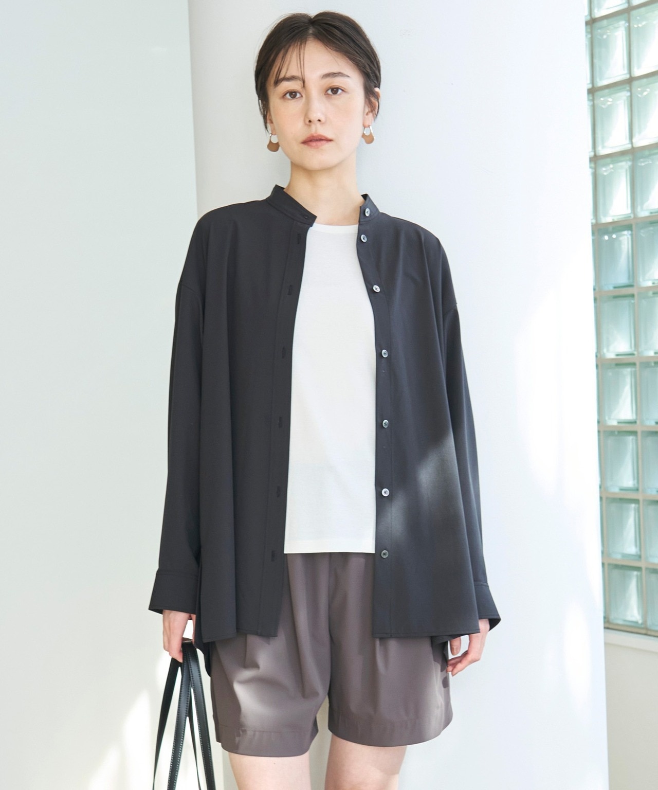 - 【接触冷感/UVカット】ドライスラブストレッチ スキッパー ブラウス/23区