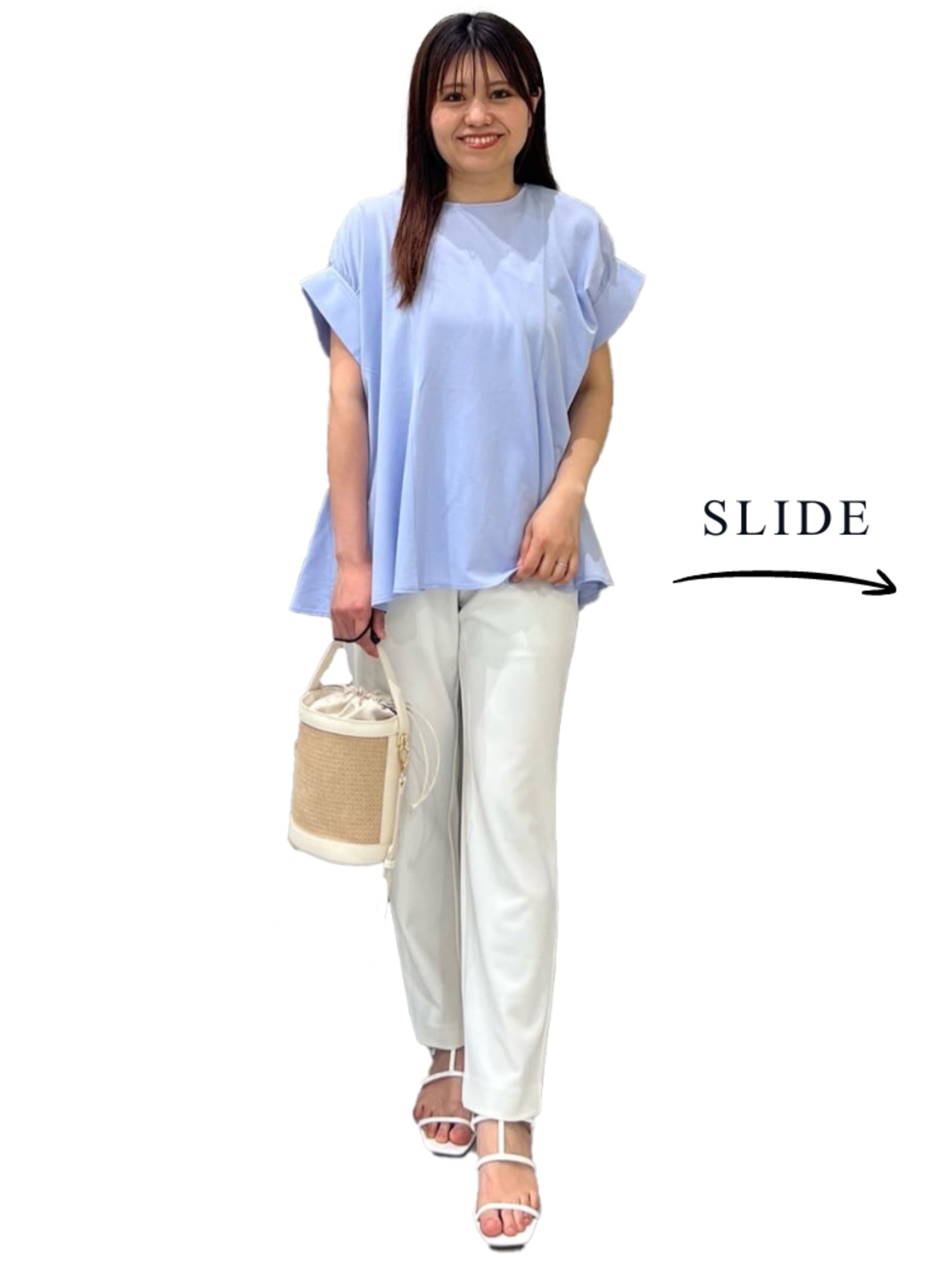Tシャツ特有のラフさを感じさせない、フレアデザイン。裾にかけてドラマチックに広がる分量感が、ブラウスのような上品さを演出。汗ばむ季節も、遮熱・接触冷感・吸水速乾機能で、暑さと戦わずキレイをキープしてくれます。ヒップまでカバーする着丈は、沢山動く帰省中のパンツスタイルとも好相性。