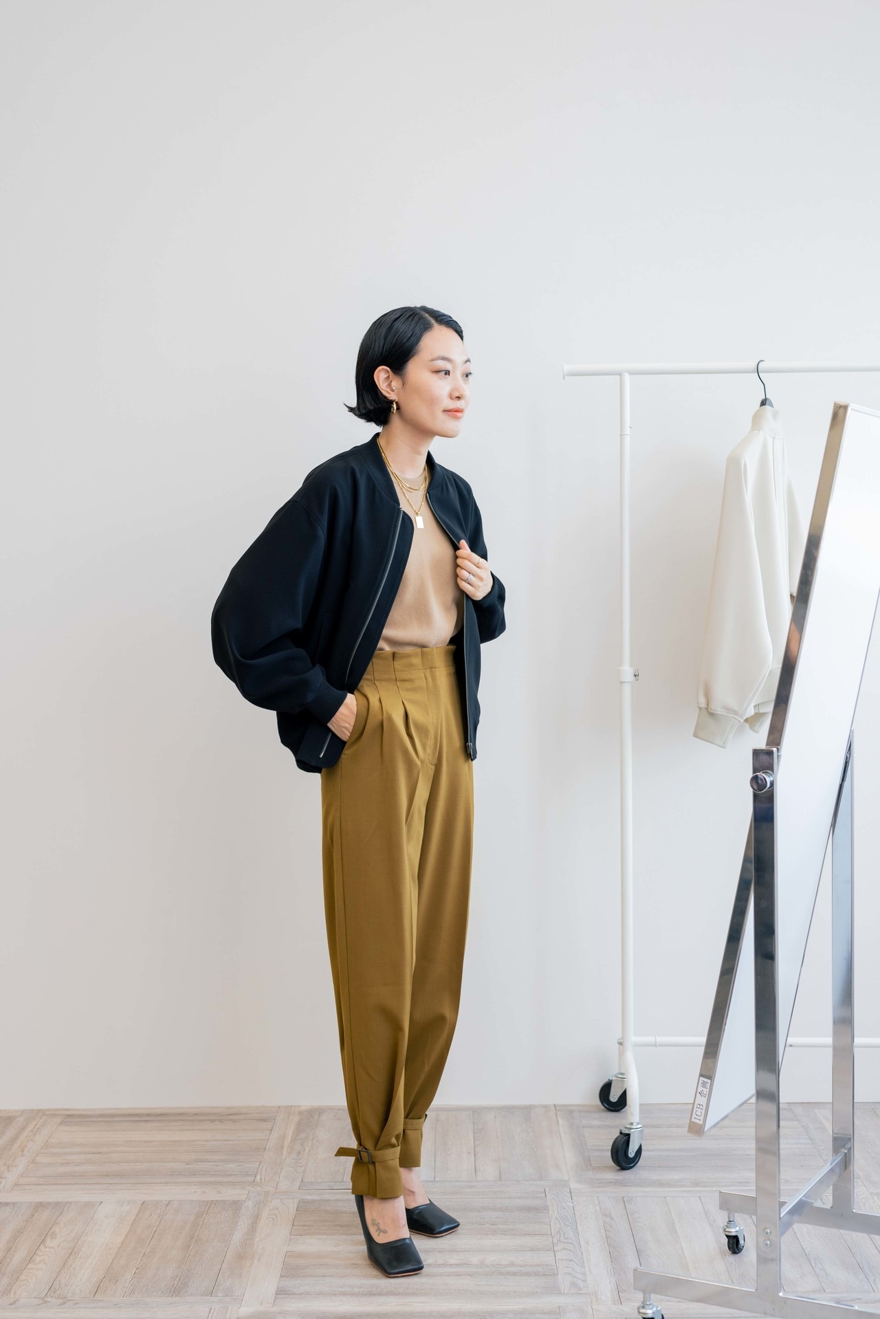 きれいめボトムにブルゾンを合わせて抜け感ある今っぽい着こなしが秋のトレンドです。