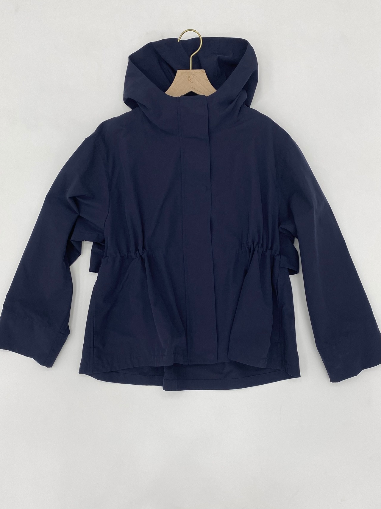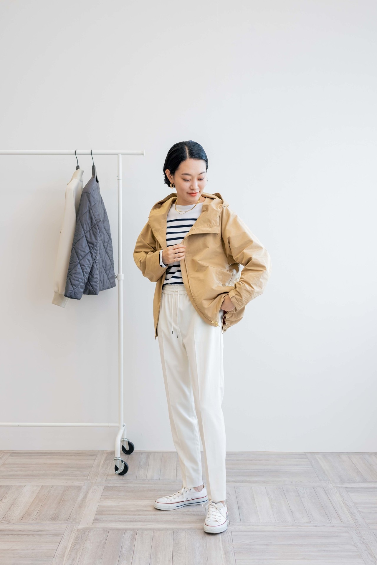 ボリューム感は今っぽく、だけどスカートにバッチリ合うカジュアルジャケットです。ウエストのゴムコードを絞るとフィット&フレアーのシルエットに変化。スカートとの相性が抜群です。絞らずに着るとパンツにも合わせやすく万能アウターです。