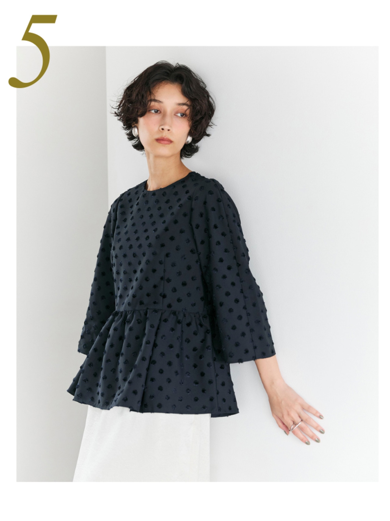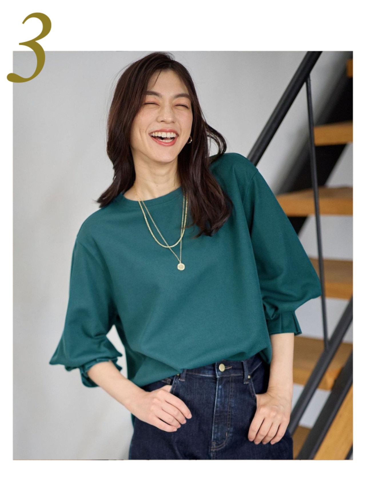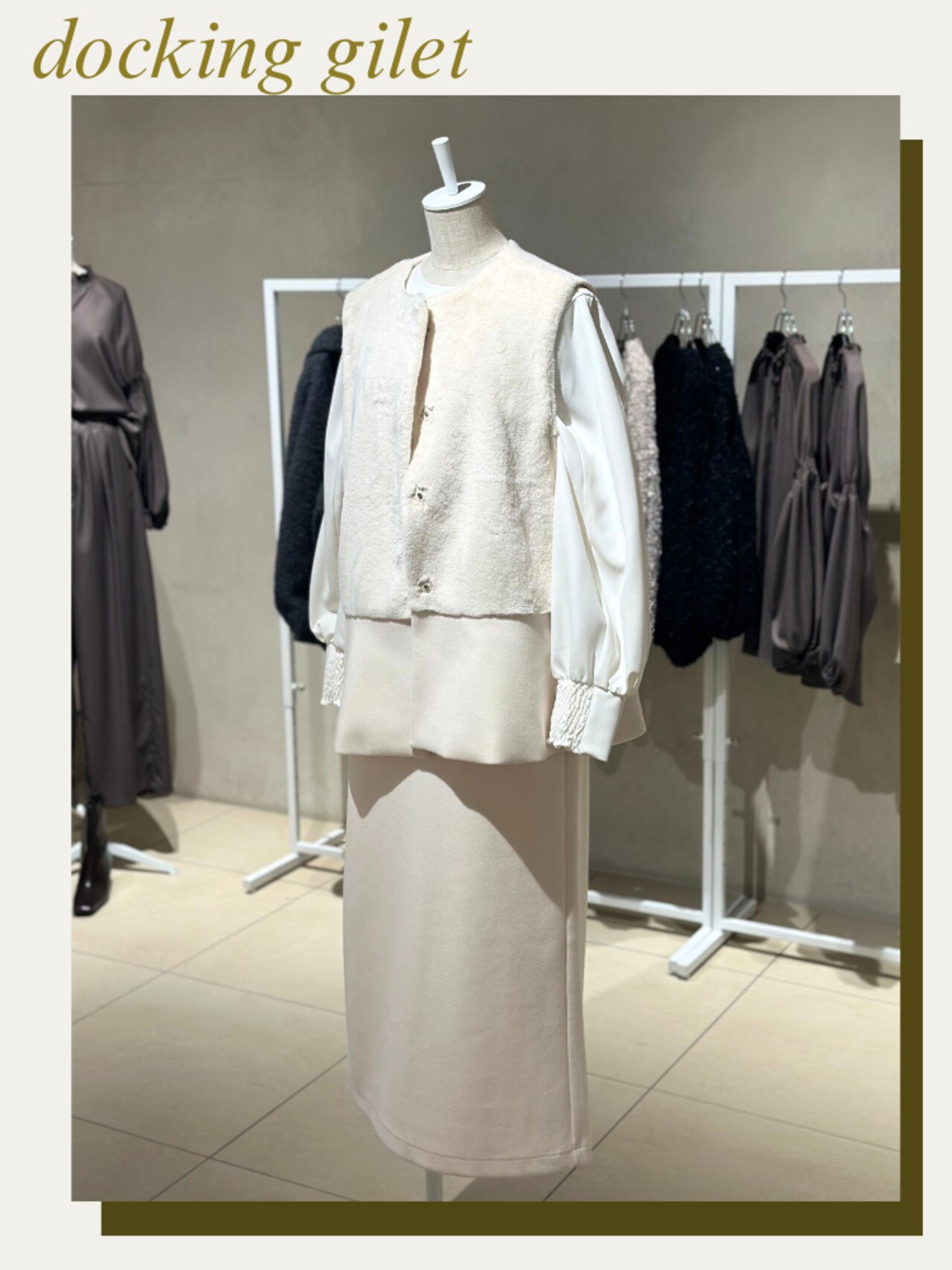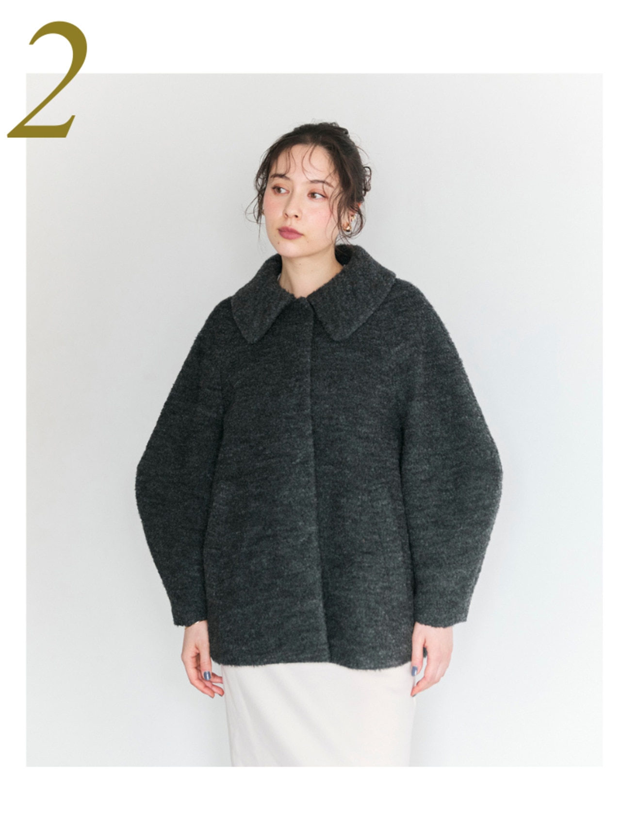 大好きなワントーンコーデに、ふわふわのシャギートップスを合わせて表情をプラス。裾のフレアと深めのVネックが程よく身体のラインをカバーしながらキレイにも見せてくれるのがポイントです。(販促担当・161cm)
