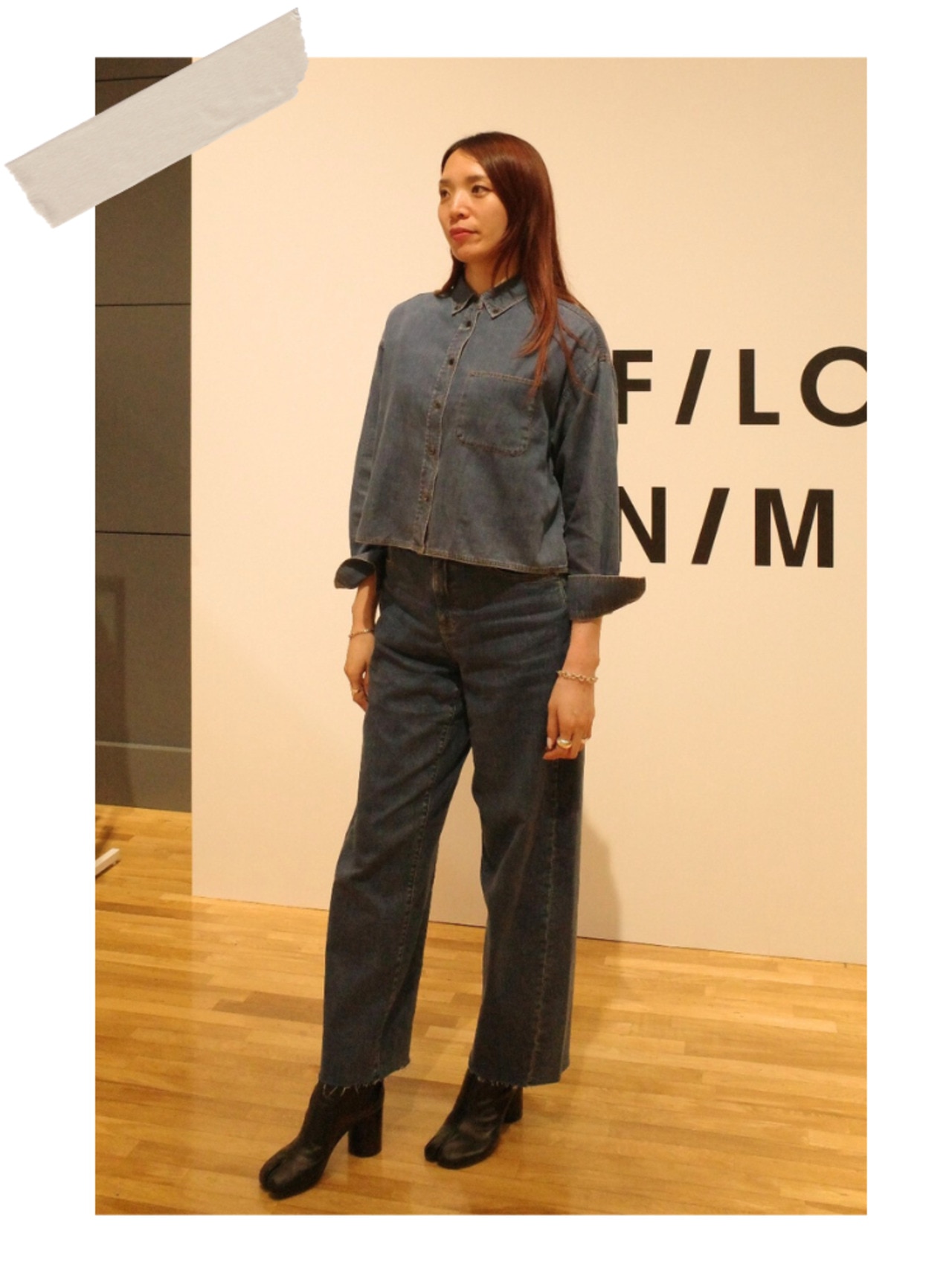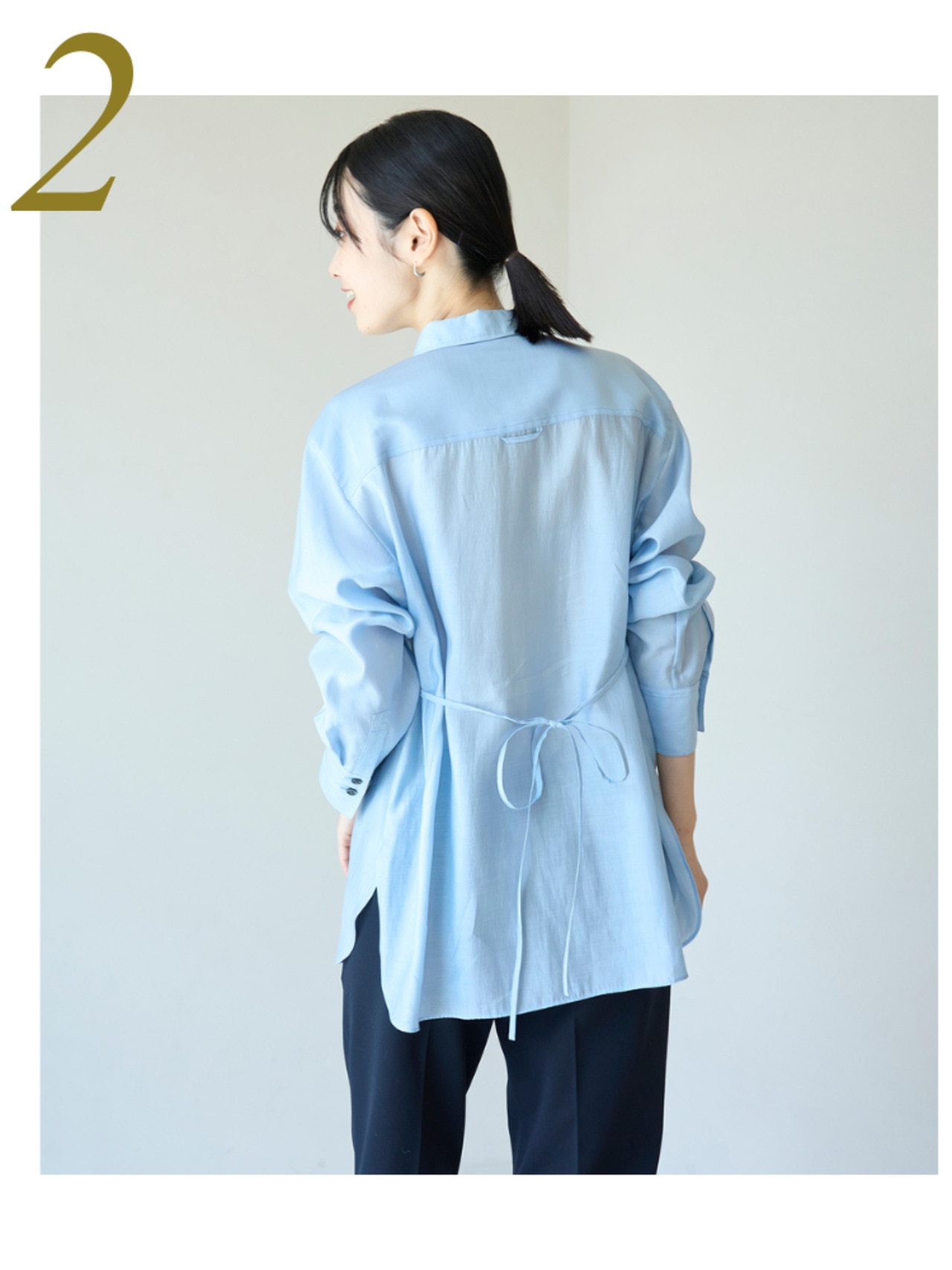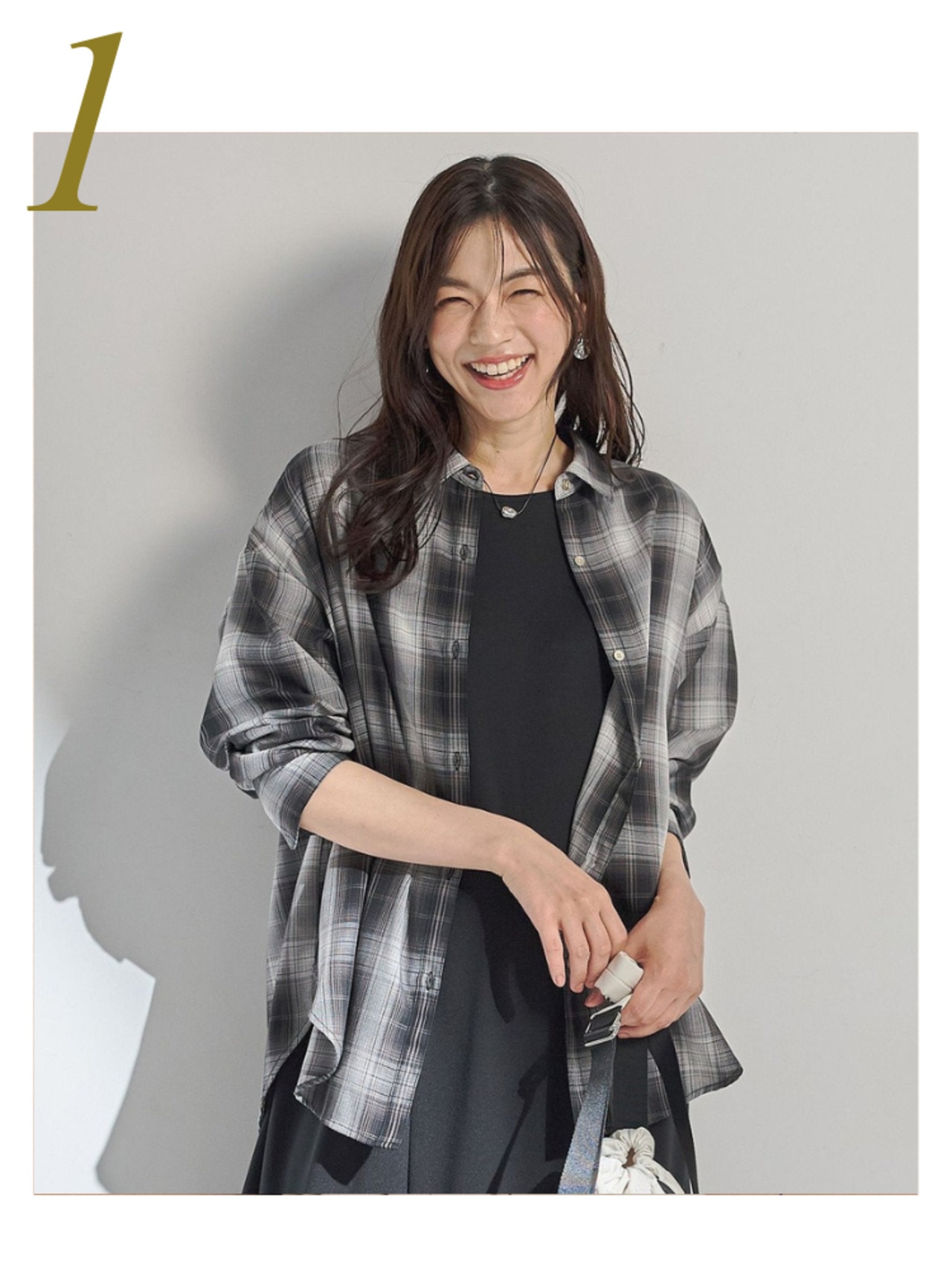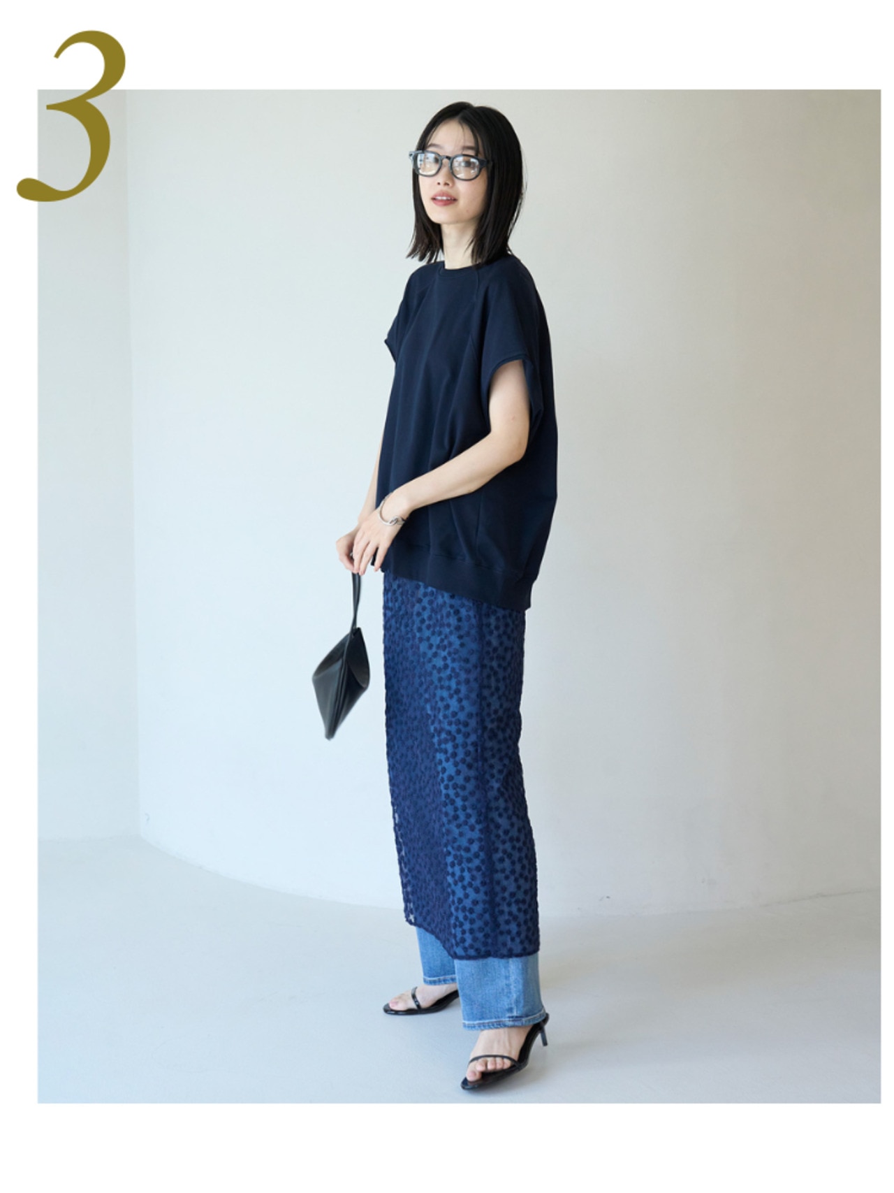 大好きなワントーンコーデに、ふわふわのシャギートップスを合わせて表情をプラス。裾のフレアと深めのVネックが程よく身体のラインをカバーしながらキレイにも見せてくれるのがポイントです。(販促担当・161cm)