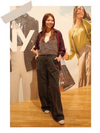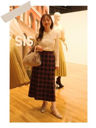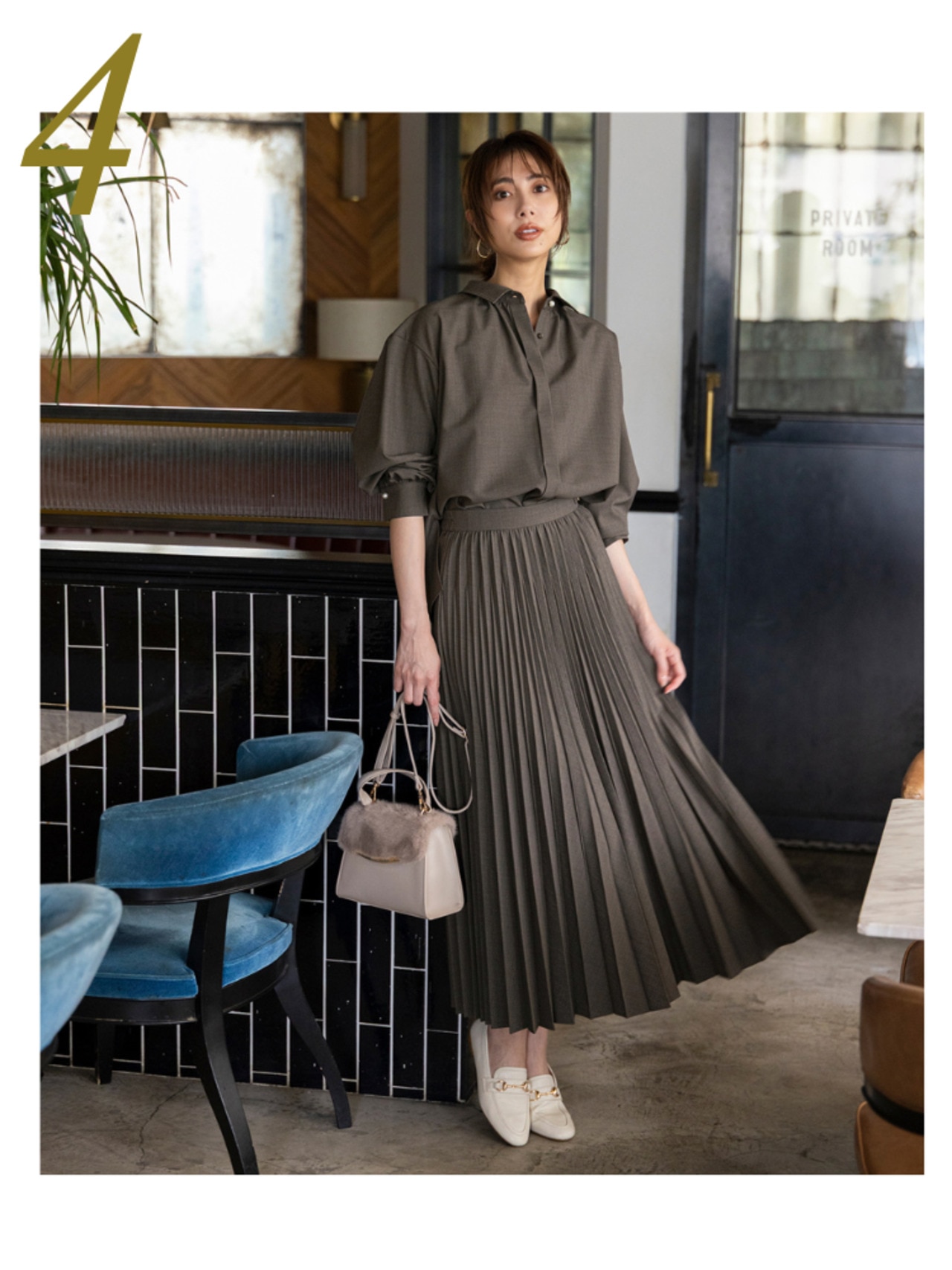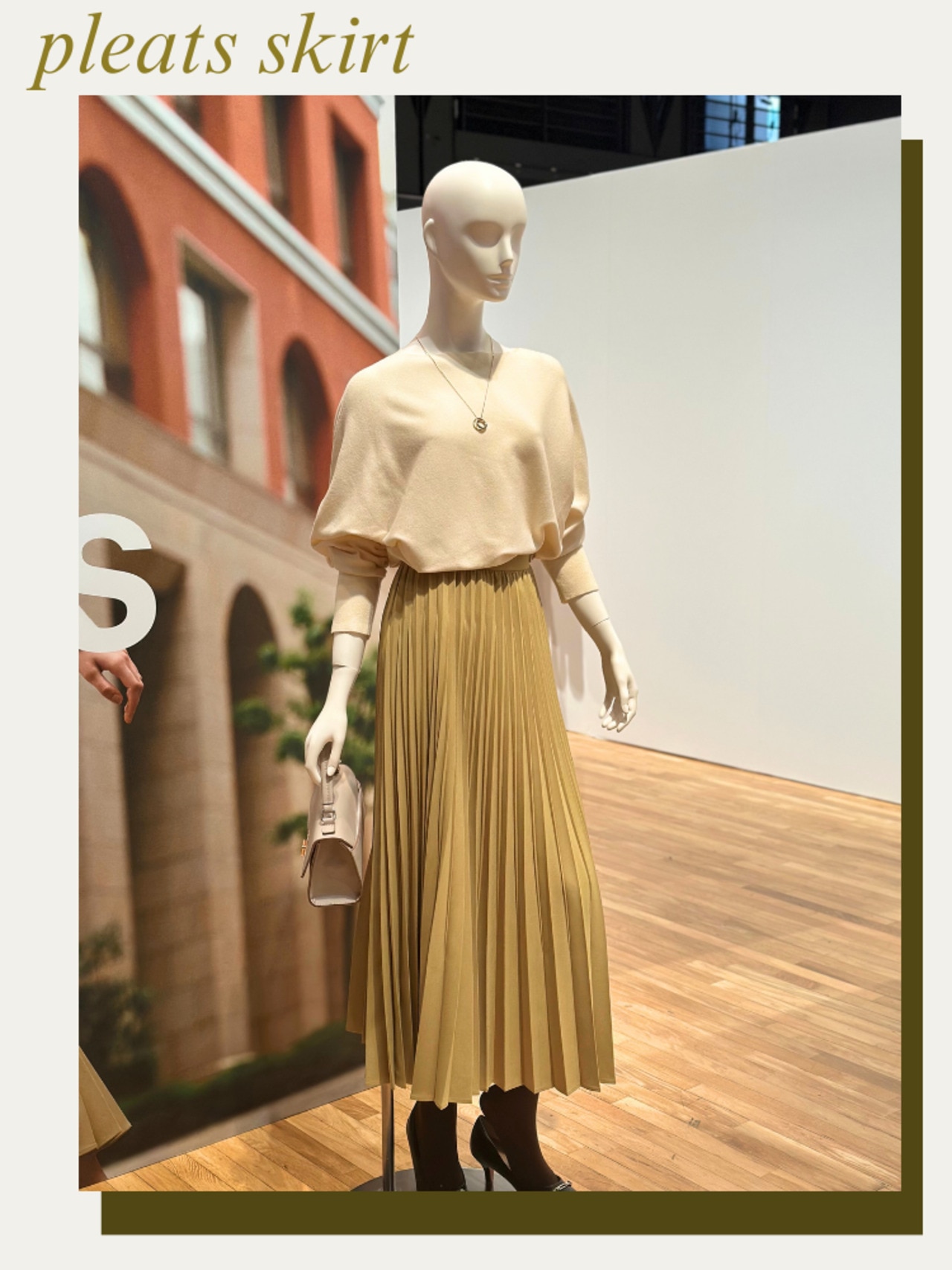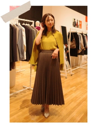 アンサンブルに、プリーツスカートを合わせた、好印象コーデ。王道スタイルも、マスタード×ブラウンの秋色コンビで、季節感を意識しました!(EC担当・153cm)