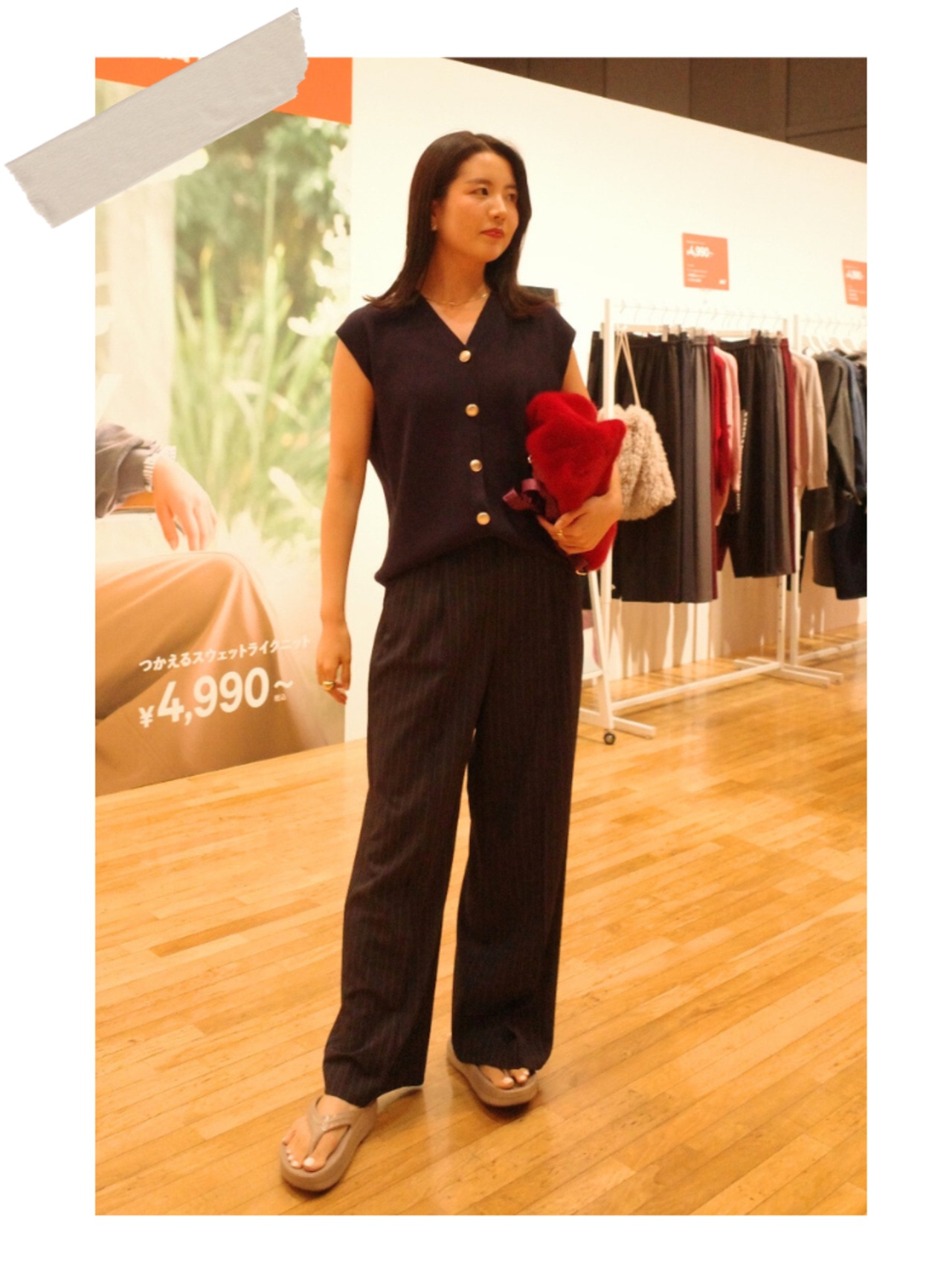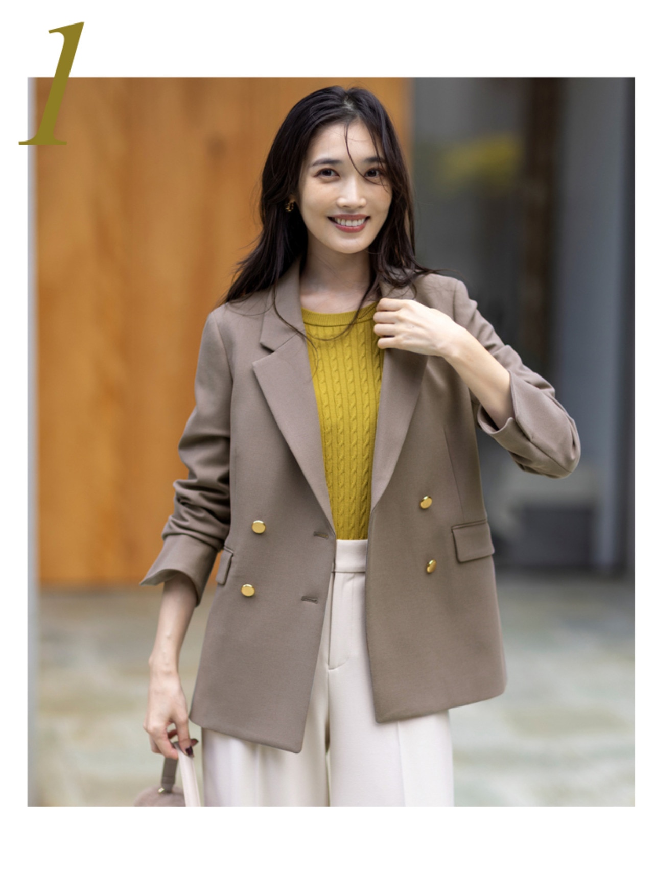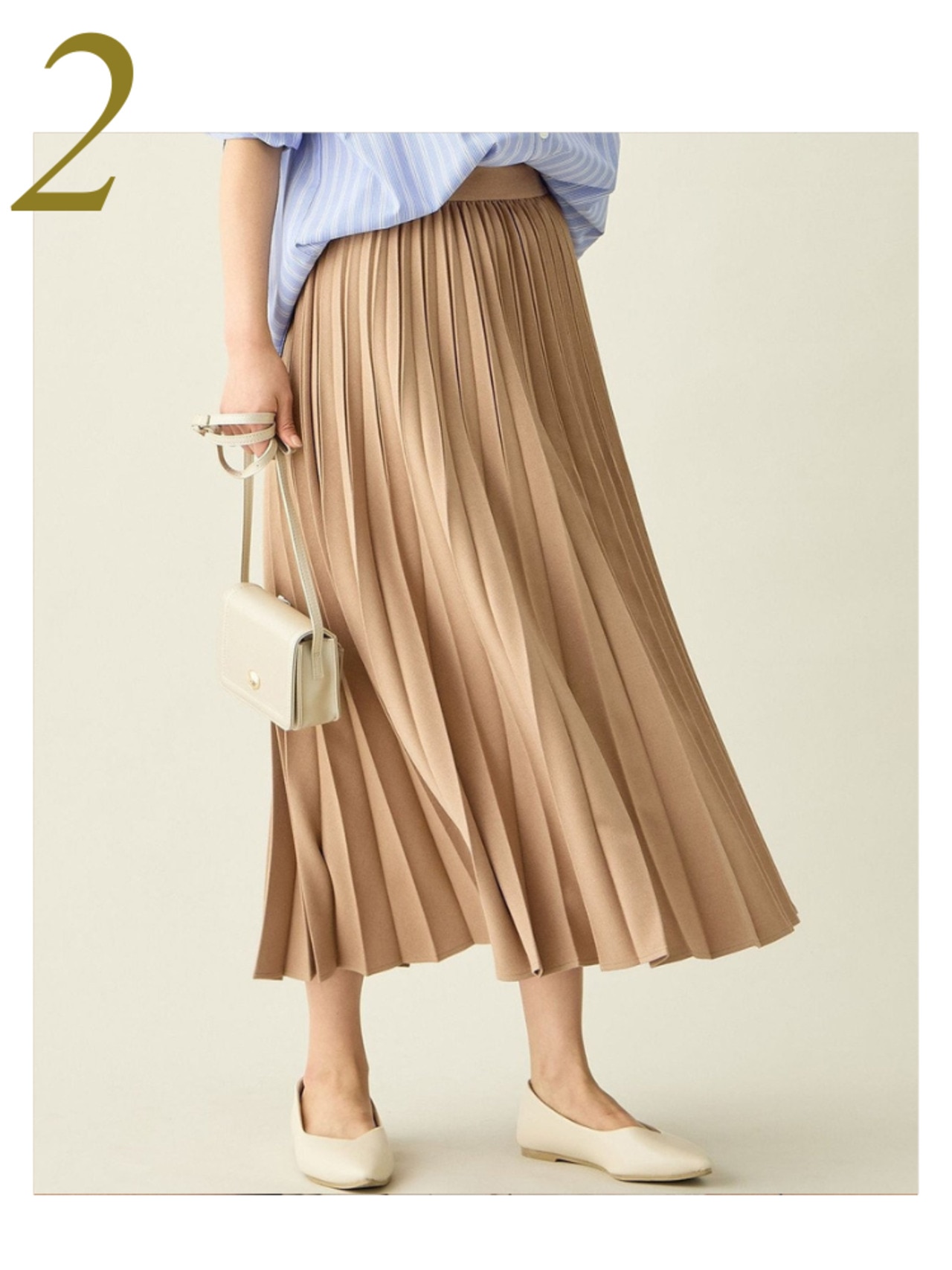 アンサンブルに、プリーツスカートを合わせた、好印象コーデ。王道スタイルも、マスタード×ブラウンの秋色コンビで、季節感を意識しました!(EC担当・153cm)