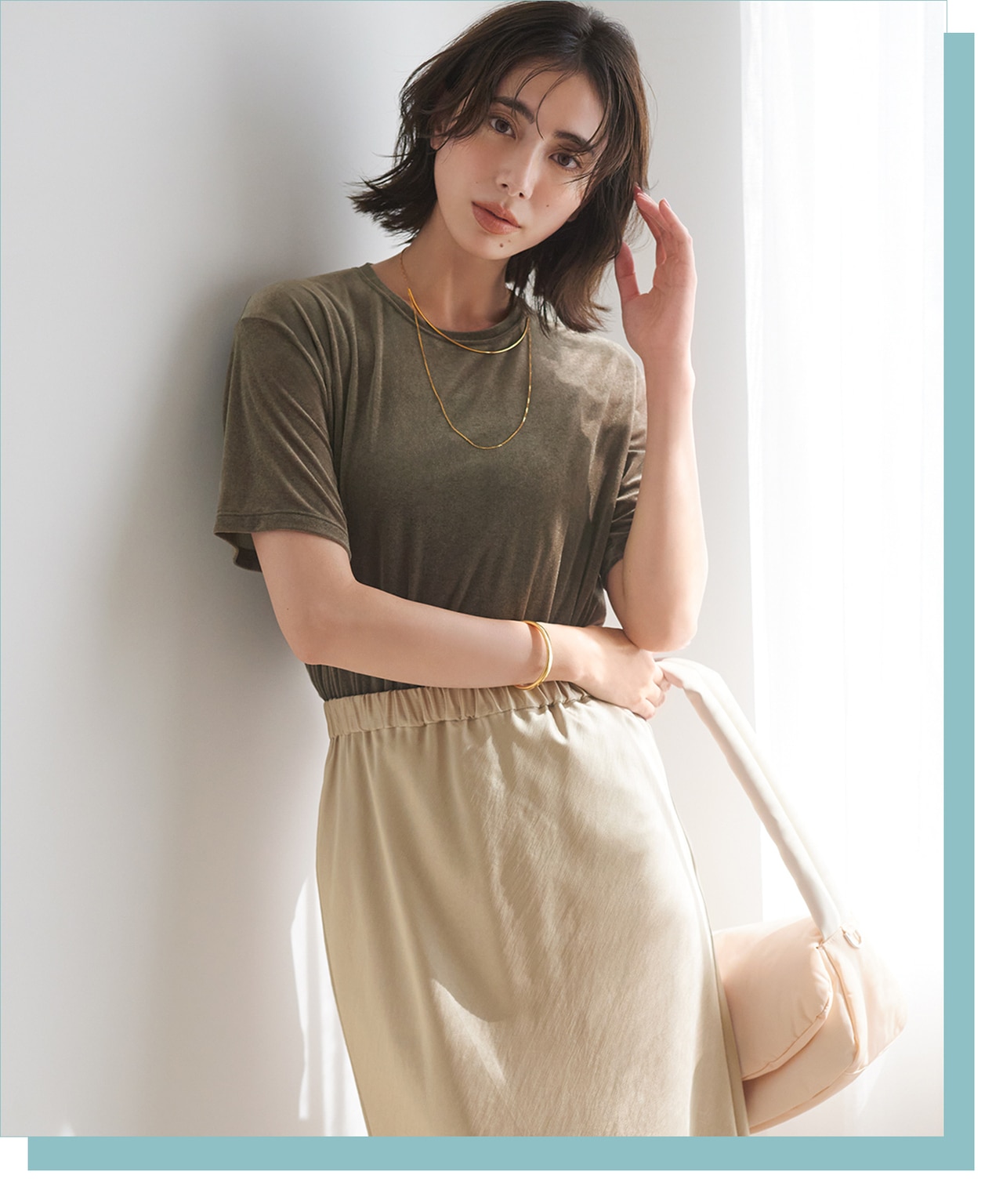 - BEAUTY FORM JERSEY Light キーネックトップス/UNFILO