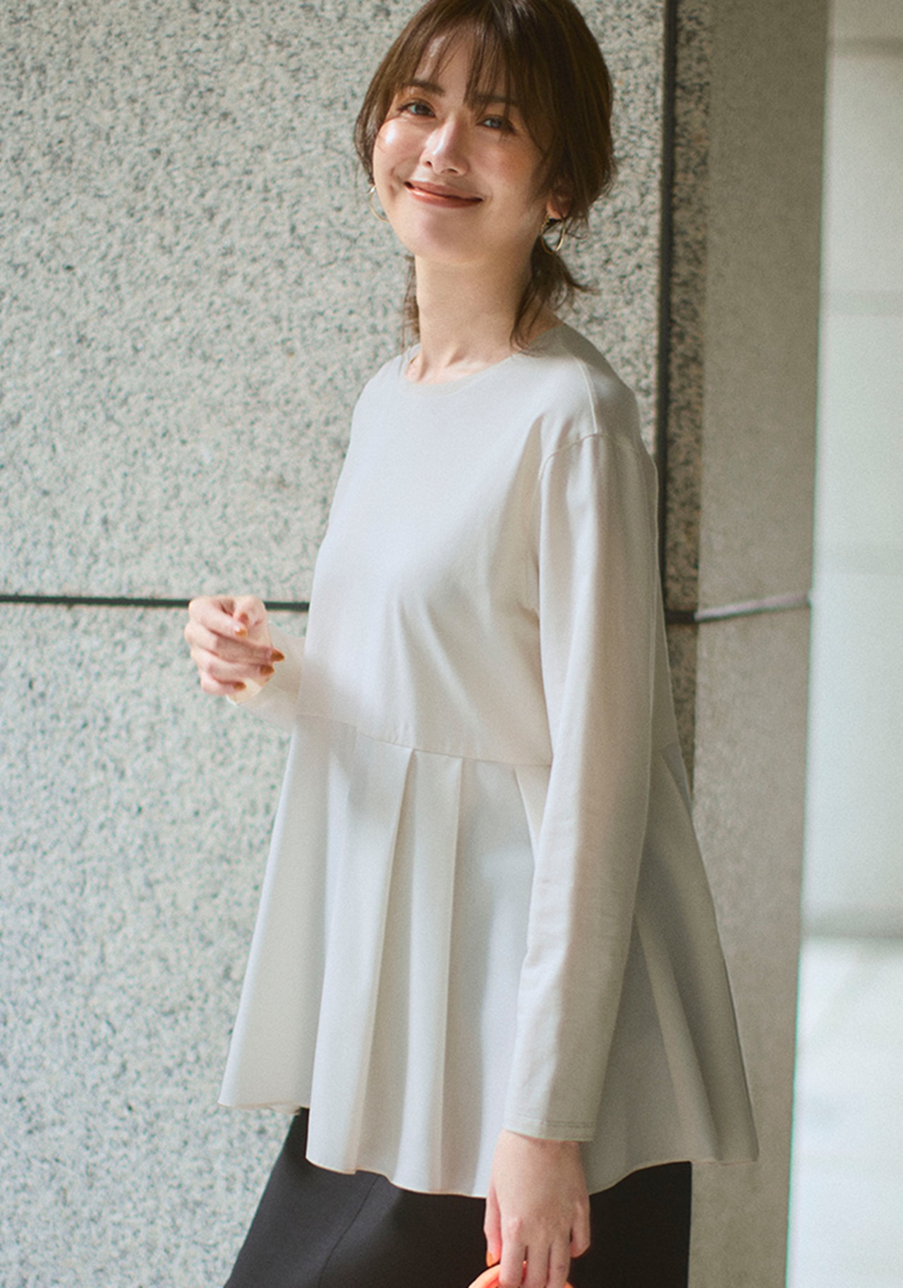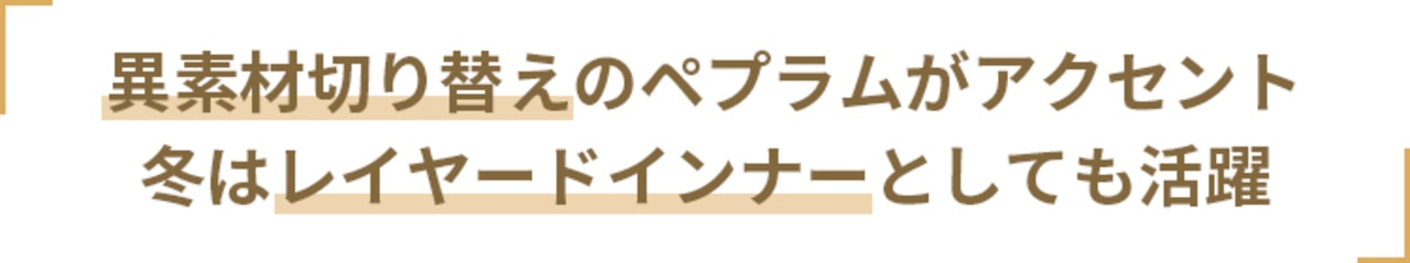 胸下で切り替えたペプラムデザインは、1枚で着映えるのはもちろん、ニットやスウェットの裾からチラ見せすればフリルのような見え感に。豊富な色展開も要チェック。