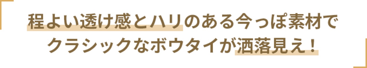 スタイリングが一気に華やぐ、ボリューム感のあるボウタイがポイントのブラウス。秋は一枚着トップスとして、冬はニットの首元からボウタイをのぞかせて、シーズンレスに活躍してくれる。
