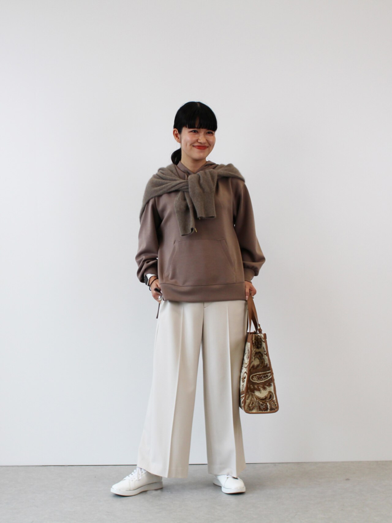 ワイドながらも、すっきりとしたシルエットで、デイリー使いから通勤まで幅広く活躍。