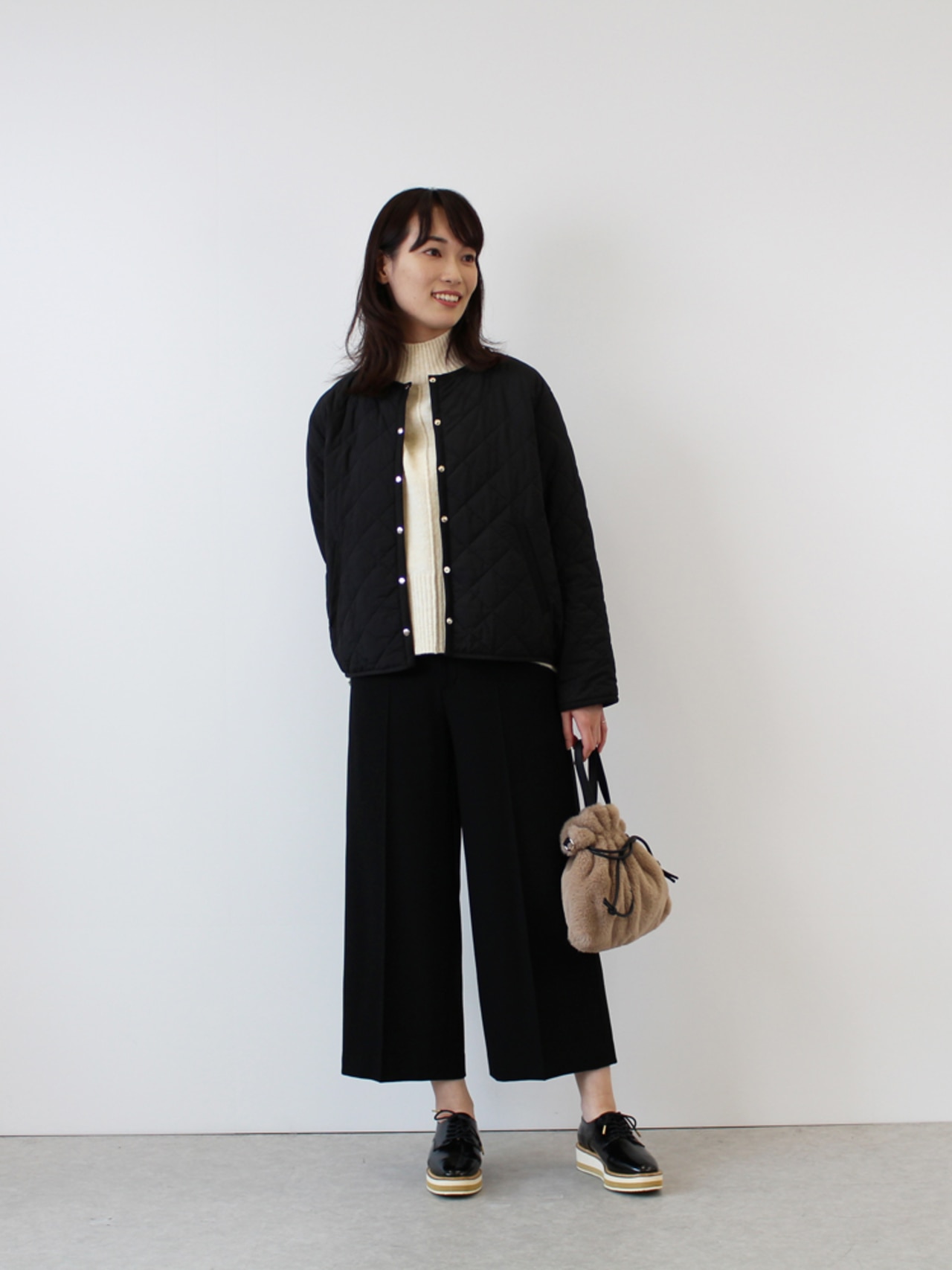 冬の通勤~おでかけシーンにはうれしいパンツ。カジュアルにもきれいめにも履けてONOFF問わず使えます。
