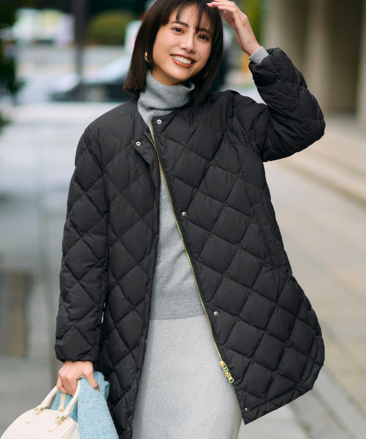 寒い日以外も着たくなるような、美シルエットのダウンコート。他ブランドと比較した上でも選ばれている理由は、高見えするマットな素材感など、値段以上の質の良さ。マフラーいらずの襟元も高ポイント。
