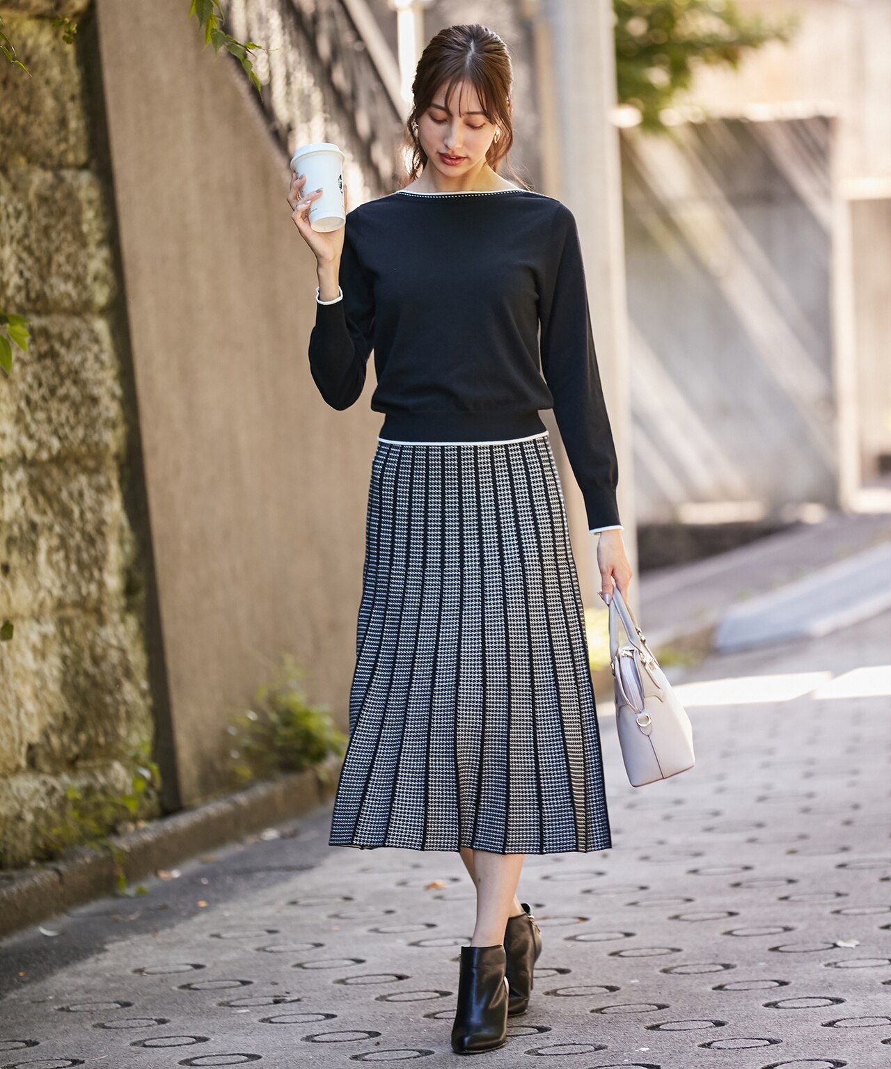 ・サイドにスリットを入れることで程よい抜け感をプラスし、ひざ丈でも足さばきが良いのがポイント。