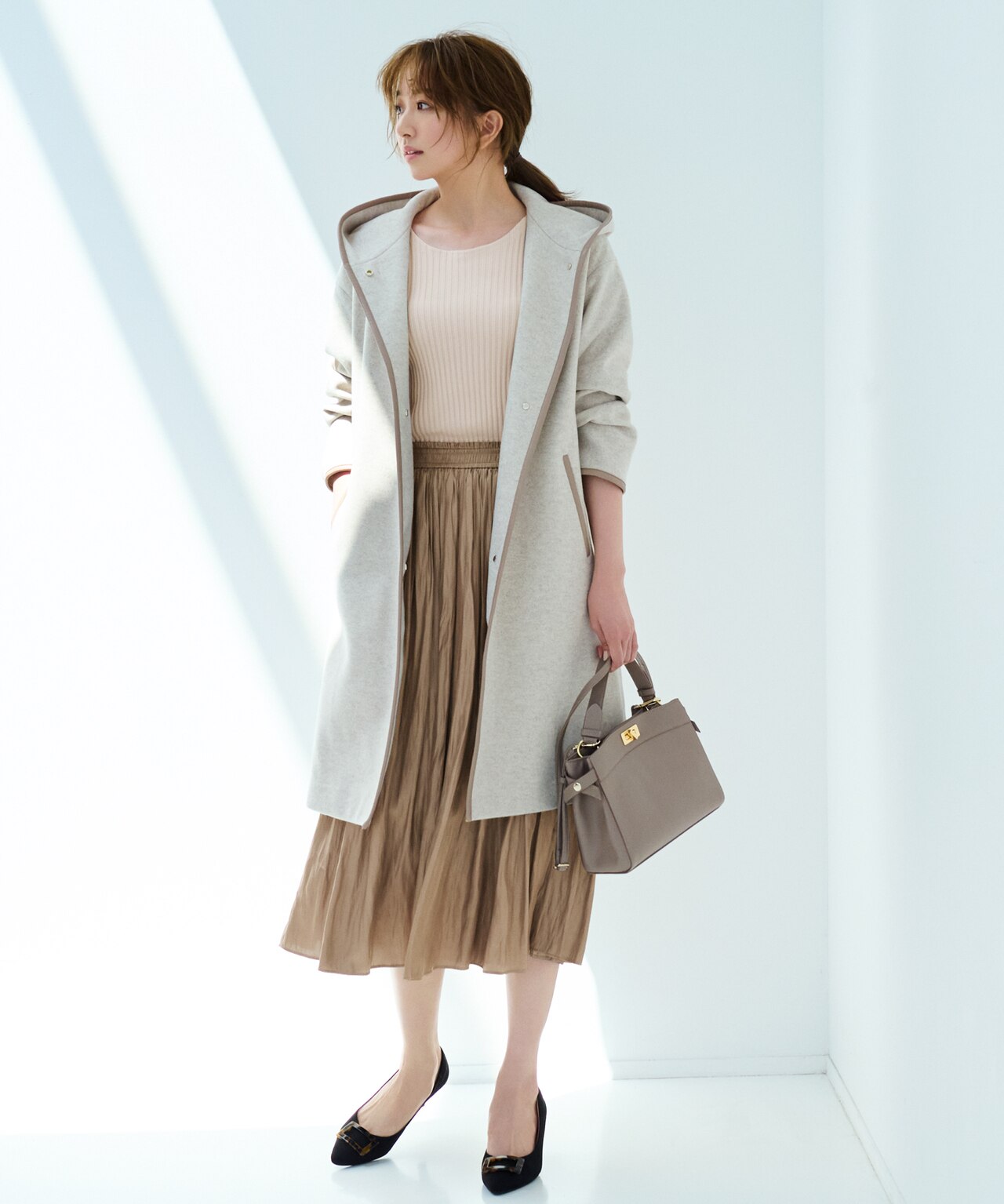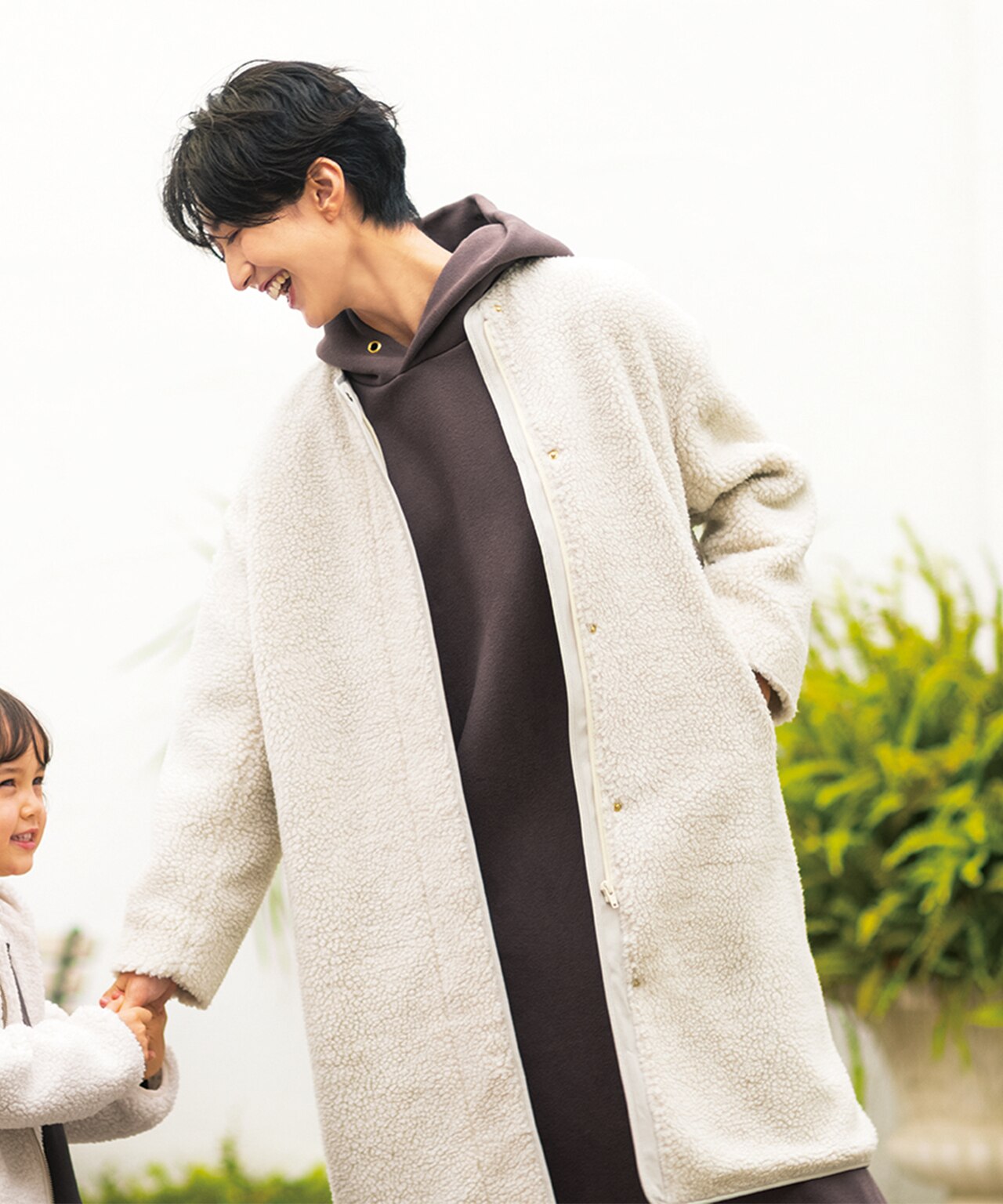 ・ フードの内側に肌触りの良いボアをあしらい、暖かさと軽さを兼ね備えたウールライクなコート