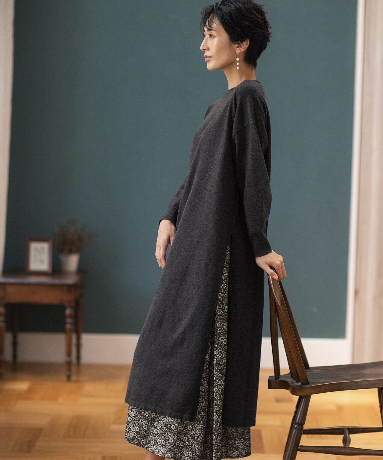 ・ニットは、片側のサイドに入れた深めのスリットがロング丈でももたつき感なく、動きやすいデザイン。