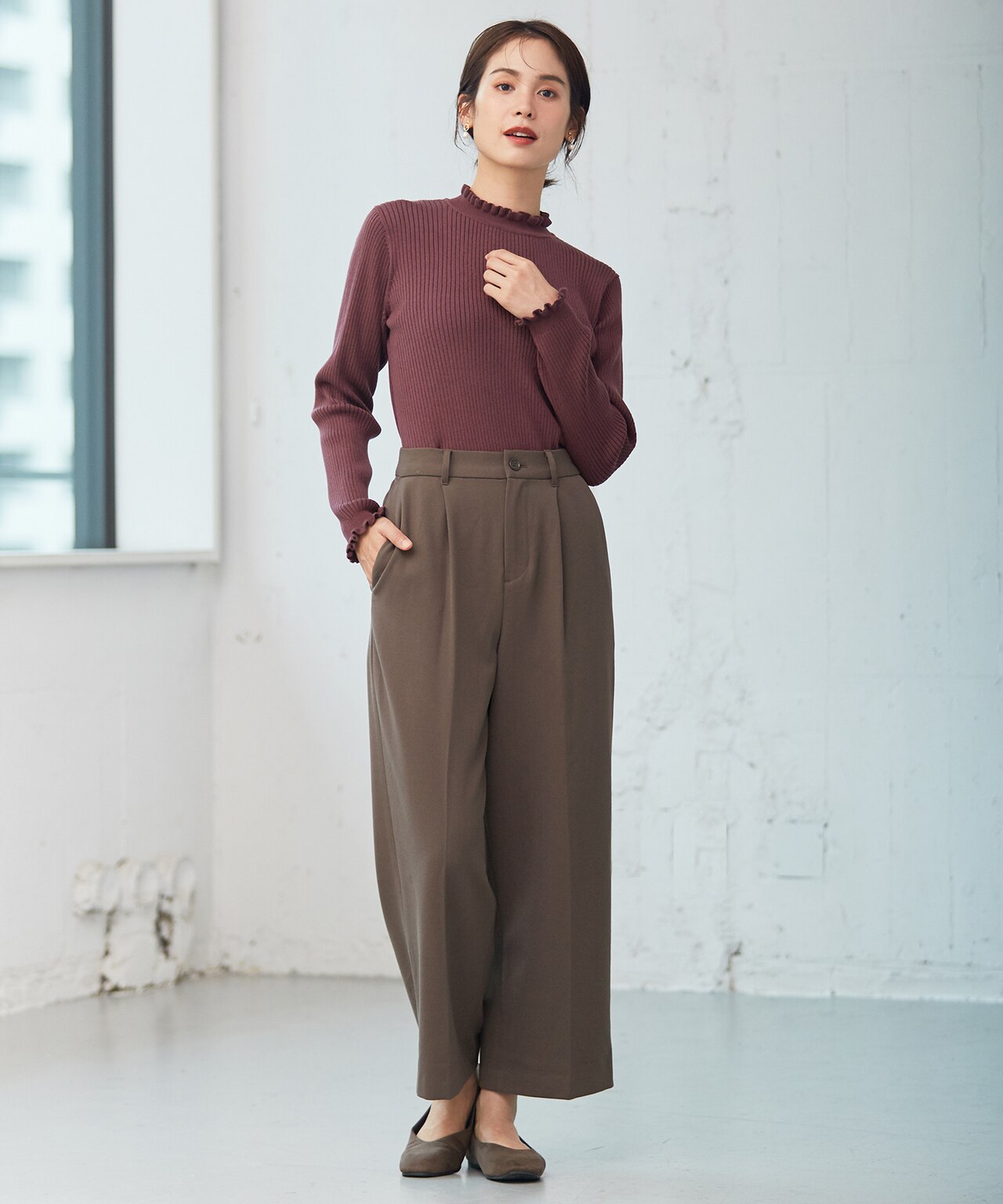 ・裏起毛で暖かい&ノンストレスな美脚見えワイドパンツ。