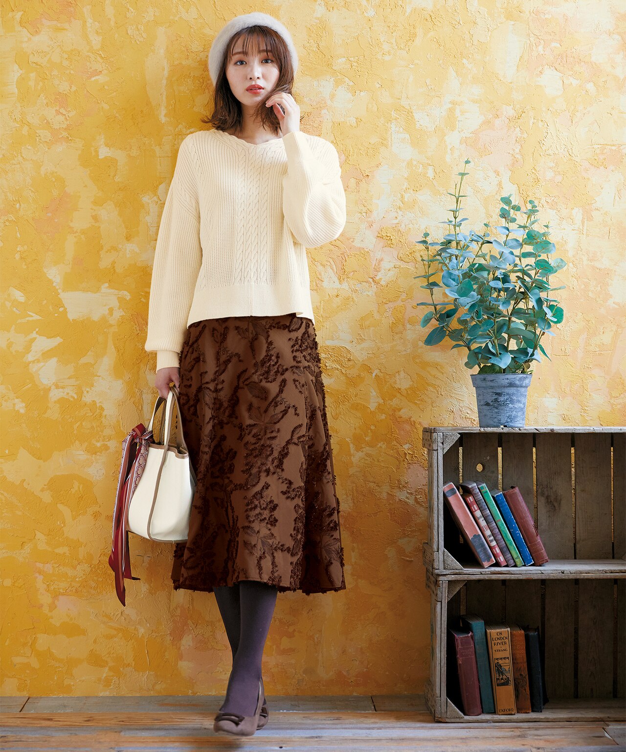 【any FAM】洗える/ロングニット×フラワースカート セット¥7,999(税込)