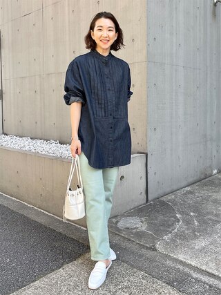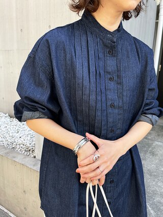 スタンドカラーとフロントのピンタックで、大人っぽい上品さを叶えたシャツは、一枚で様になる優秀アイテム。堅さと抜け感の絶妙なバランスを楽しめます。