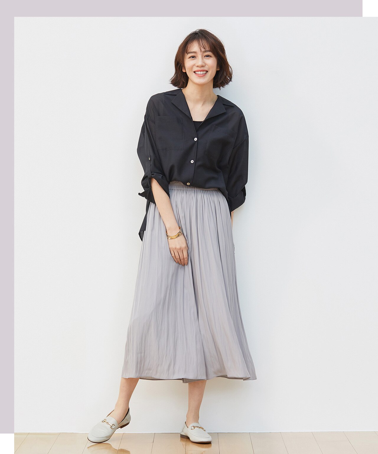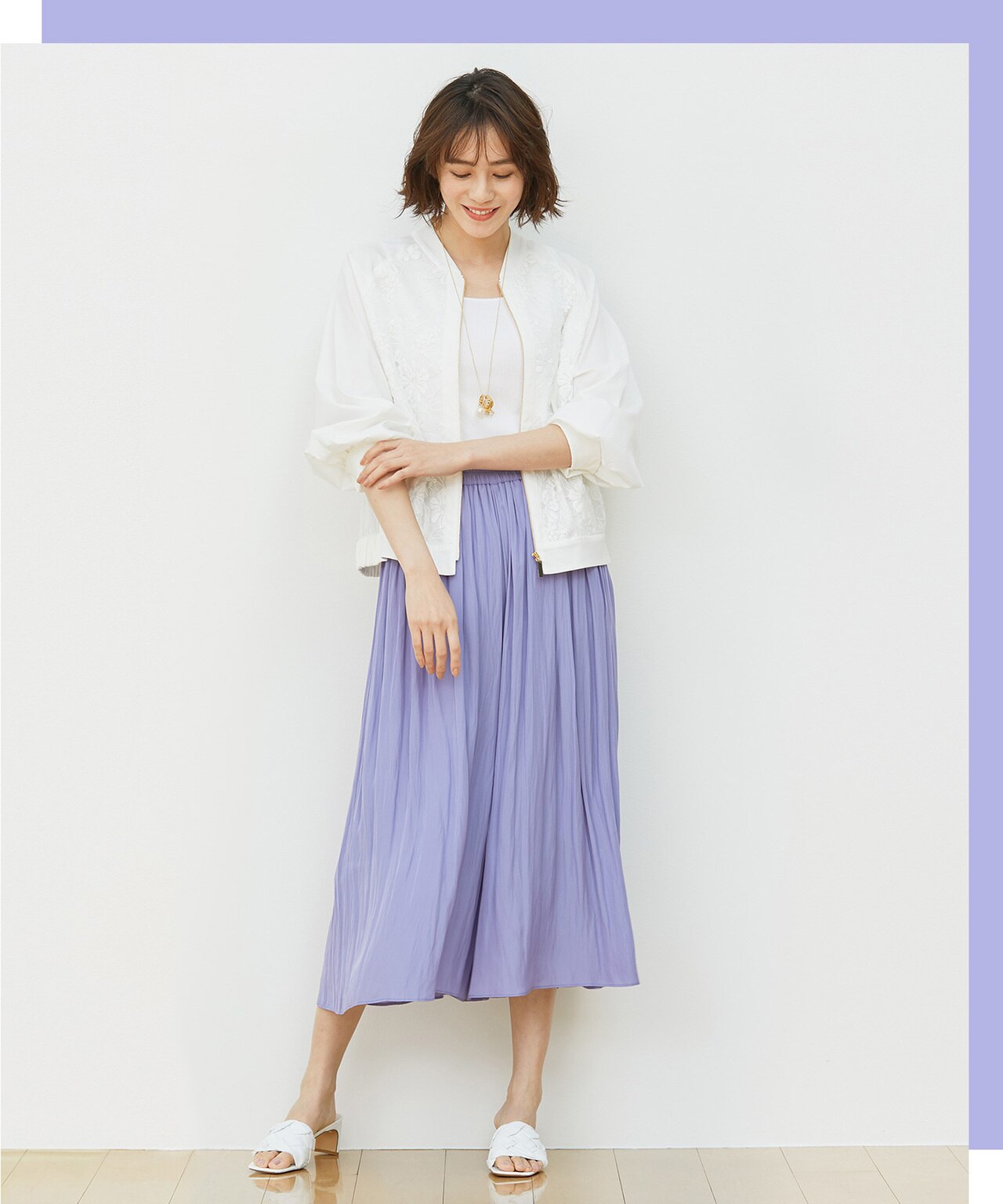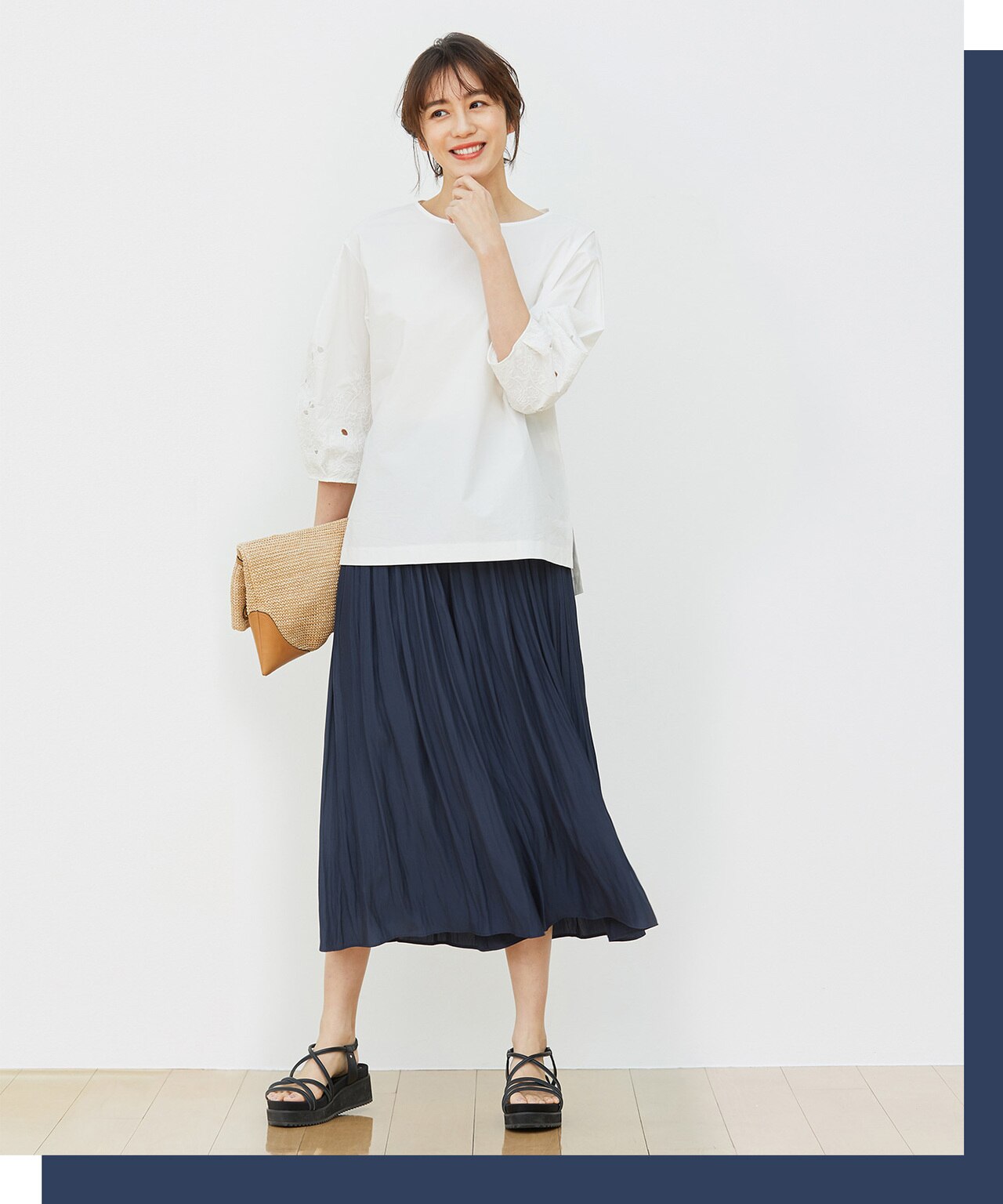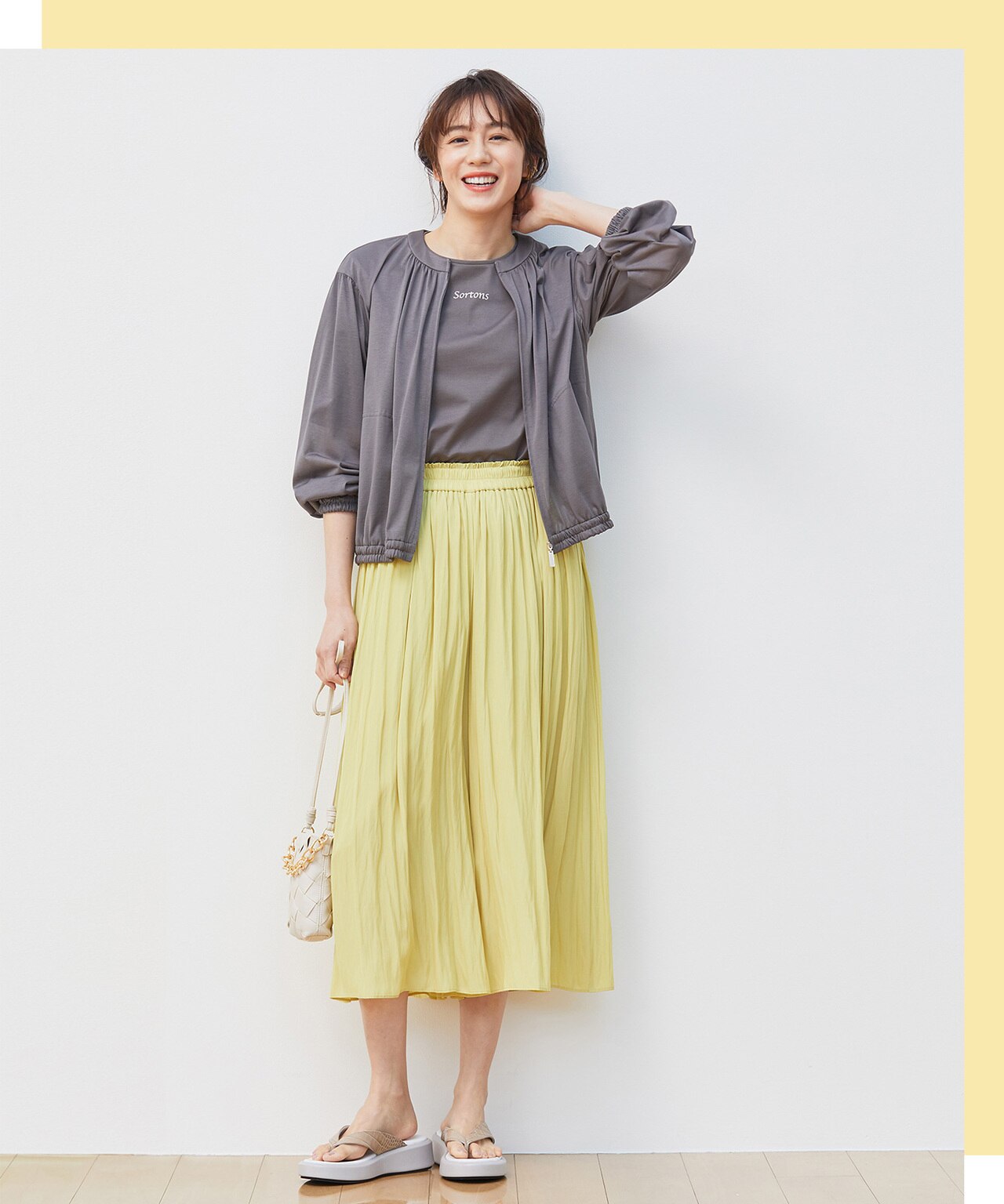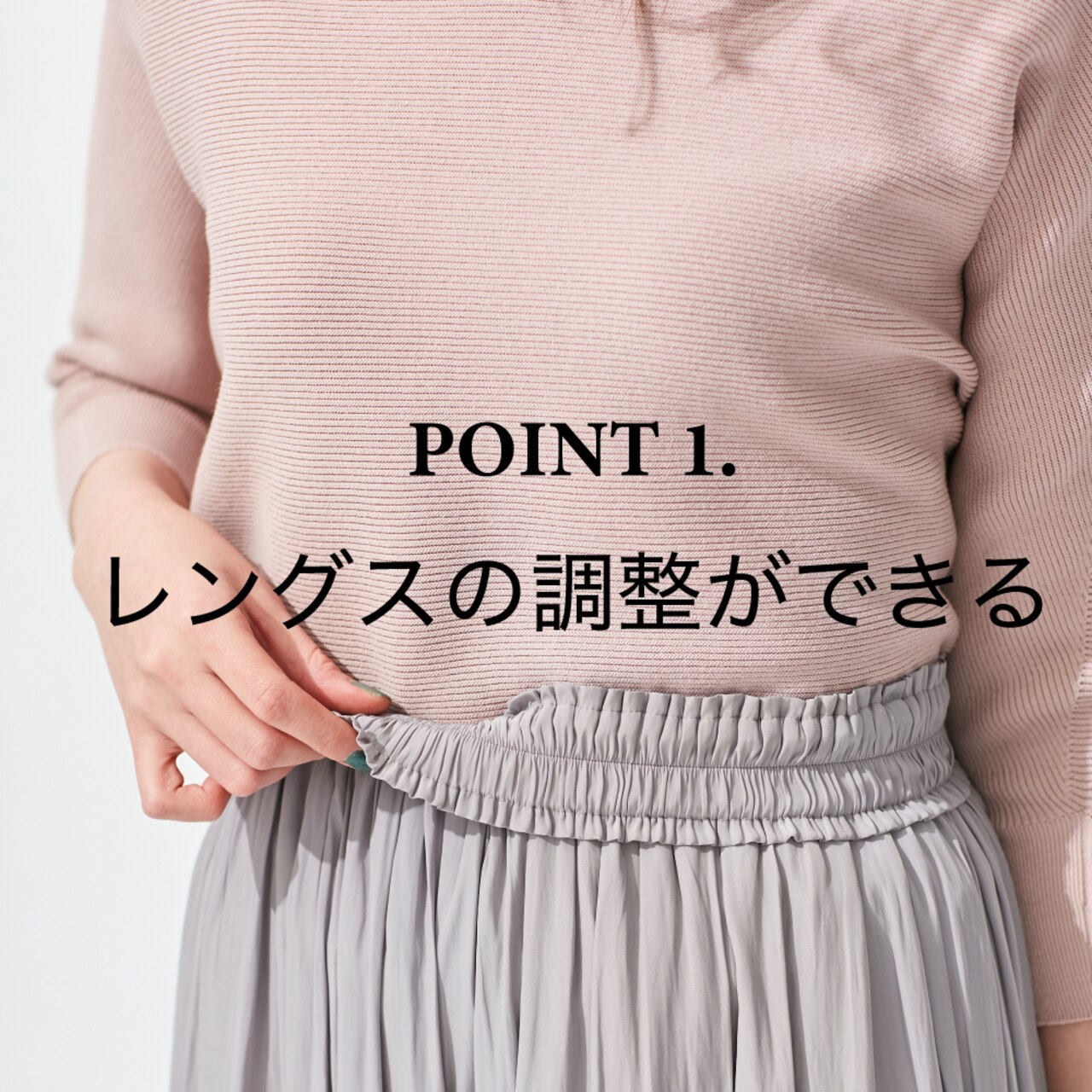 トップスや身長に合わせて、ウエスト部分を折り返すことで-4cmの調整が可能です。
