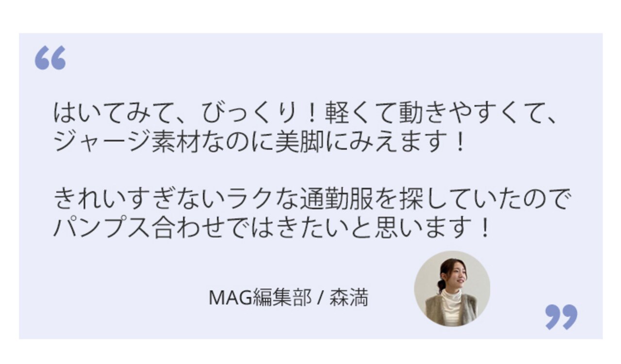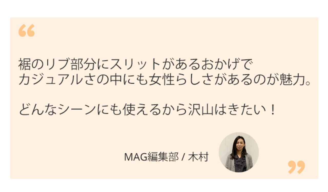 暖かくなるこれからの季節にぴったりな生地感が魅力。秋まで履けてロングシーズン着回せます。