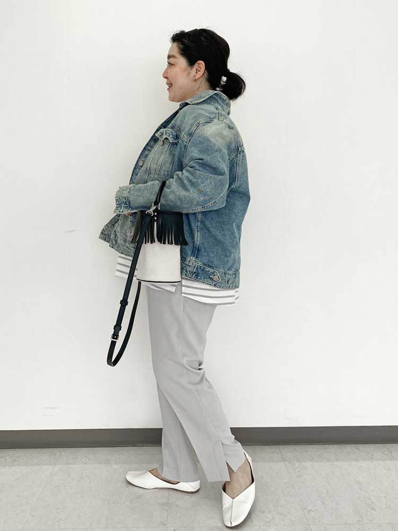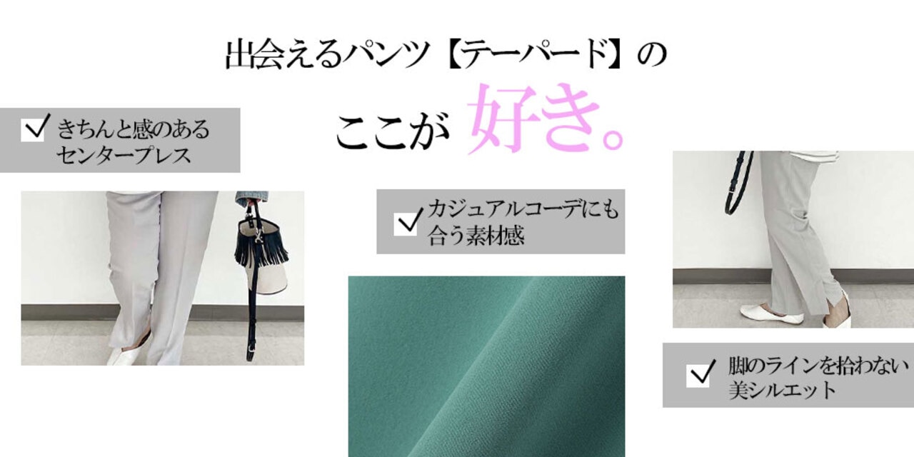 otoayabe:まずはパンツの丈感です。テーパードパンツの時は、丈が長すぎないようにくるぶし丈か靴が見えるくらいのものをセレクトしています。