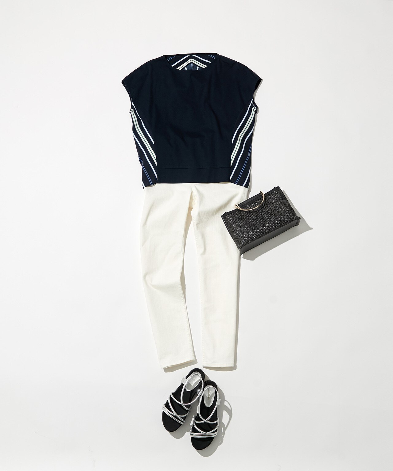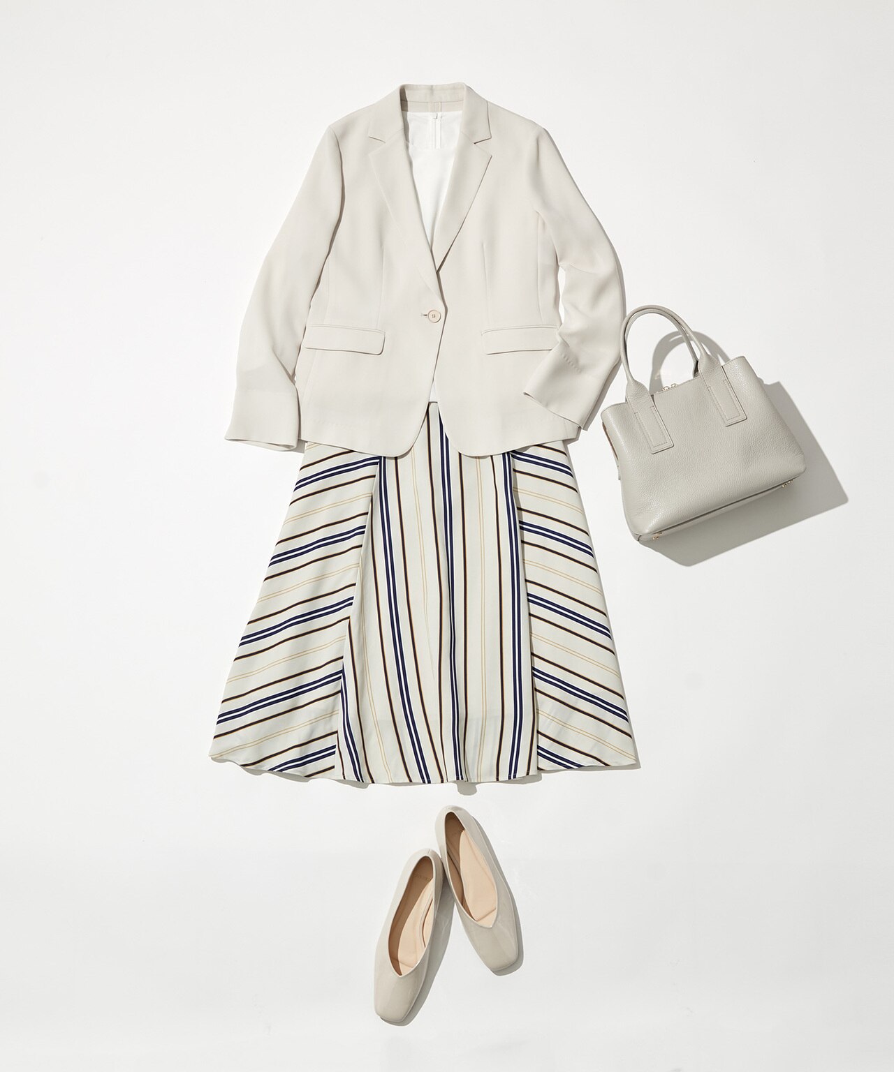 ホワイトやグリーンを配色にしたストライプのおかげで、春夏でも使いやすい軽やかな印象に。