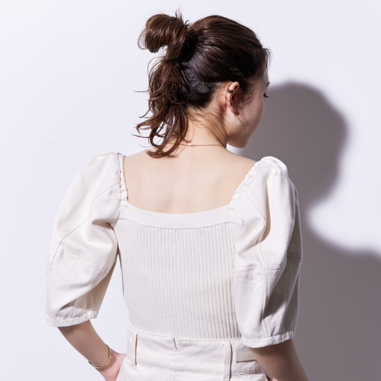 深めに入った背中のUラインで女性らしいシルエット。