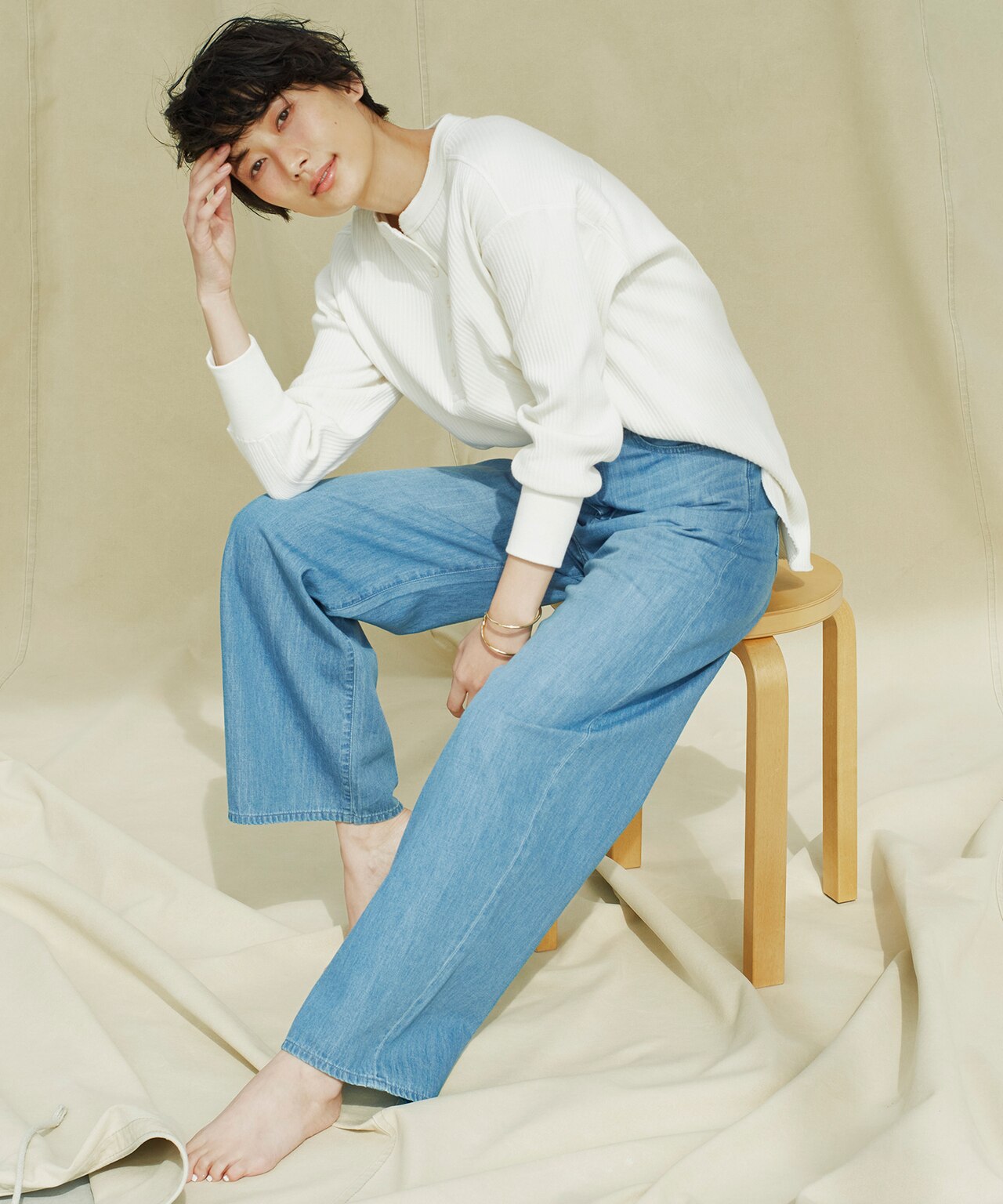 「暑苦しい」、「締め付ける」という概念は、もはやゼロの「薄」&「淡」デニム。単調になりがちな夏の着こなしに、新しさを出してくれるのが魅力。
