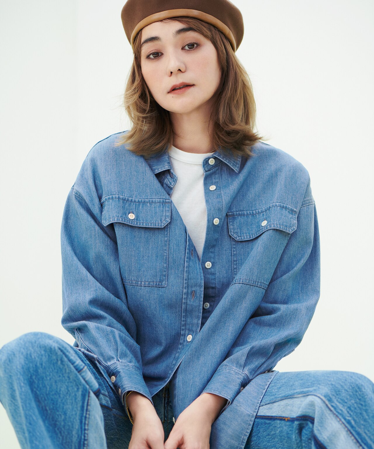デニムシャツはシルエットが大きめ&柔らかな素材にシフト。ライトオンスのデニムなので軽く、重ね着もしやすいのでオールシーズン使えると好評。さっと羽織って初夏の日除けに。【CLASSY./タブロイド 掲載】23区DENIM ライトオンス デニム シャツ(番号2D26)【CLASSY./タブロイド 掲載】23区DENIM ライトオンス デニム シャツ(番号2D26)23区¥16,940(税込)→¥8,470(税込) -