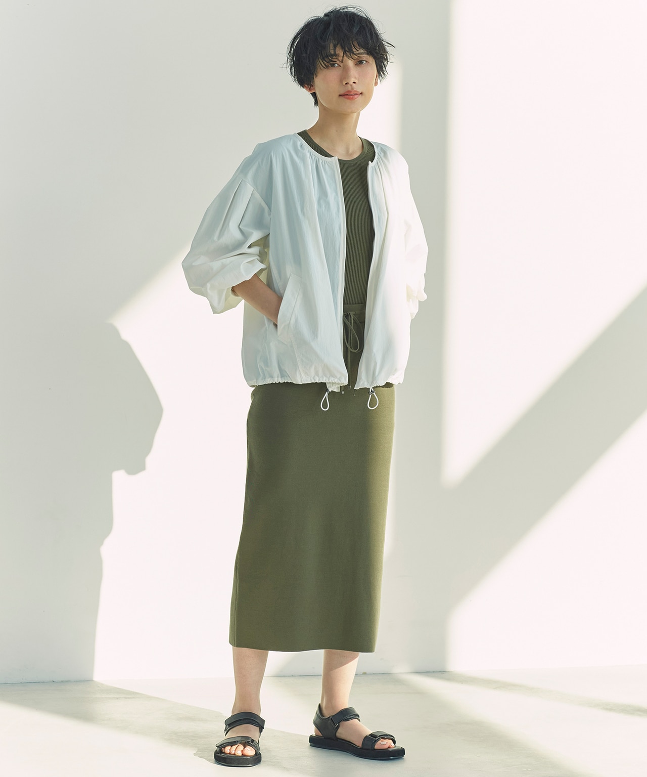 シャツを羽織っているような軽やかな着心地。ホワイトカラーを選べば落ち着いたアースカラーも明るく爽やかに。コンパクト丈なので、カーディガン代わりにワンピースもすっきり着こなせる。【SLOW】Light Nylon ノーカラー ブルゾン【SLOW】Light Nylon ノーカラー ブルゾン23区¥18,700(税込)→¥14,960(税込)