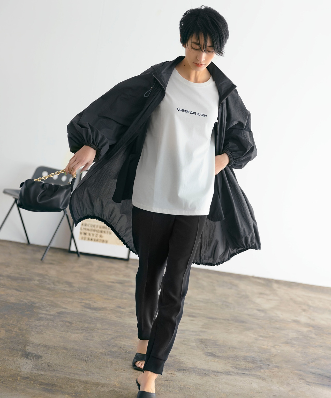 ロング丈のアウターも、シャカ素材ならトレンド感が加わって、羽織るだけで着こなしの鮮度が上がる。お尻周りや太ももも隠れるから、体型カバーにも。