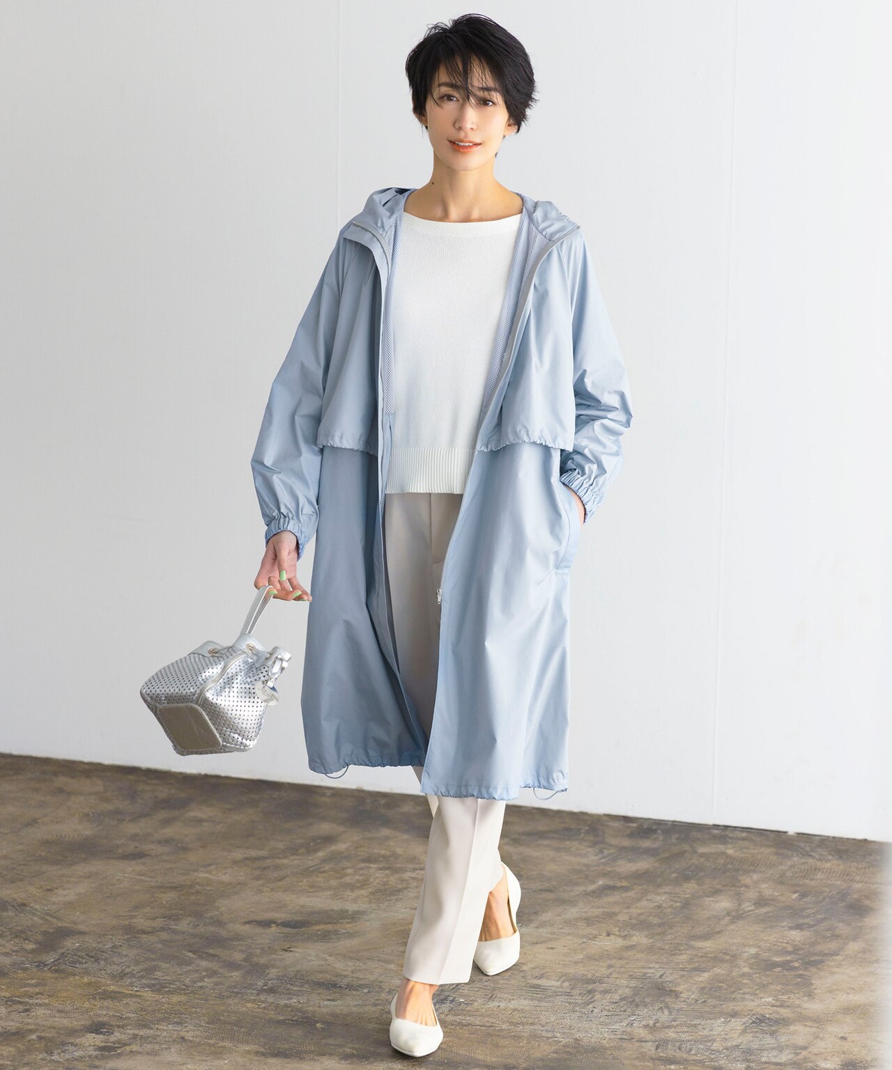 ボリューム袖と裾にギャザーが入ったアウターは、360度どこから見ても美しい立体シルエット。女っぽいシルエットだから、濃色を選んでもスポーティになりすぎずに軽やかに。【撥水加工】シアーナイロンタフタ フーデットコート【撥水加工】シアーナイロンタフタ フーデットコートICB¥38,940(税込)→¥11,660(税込)