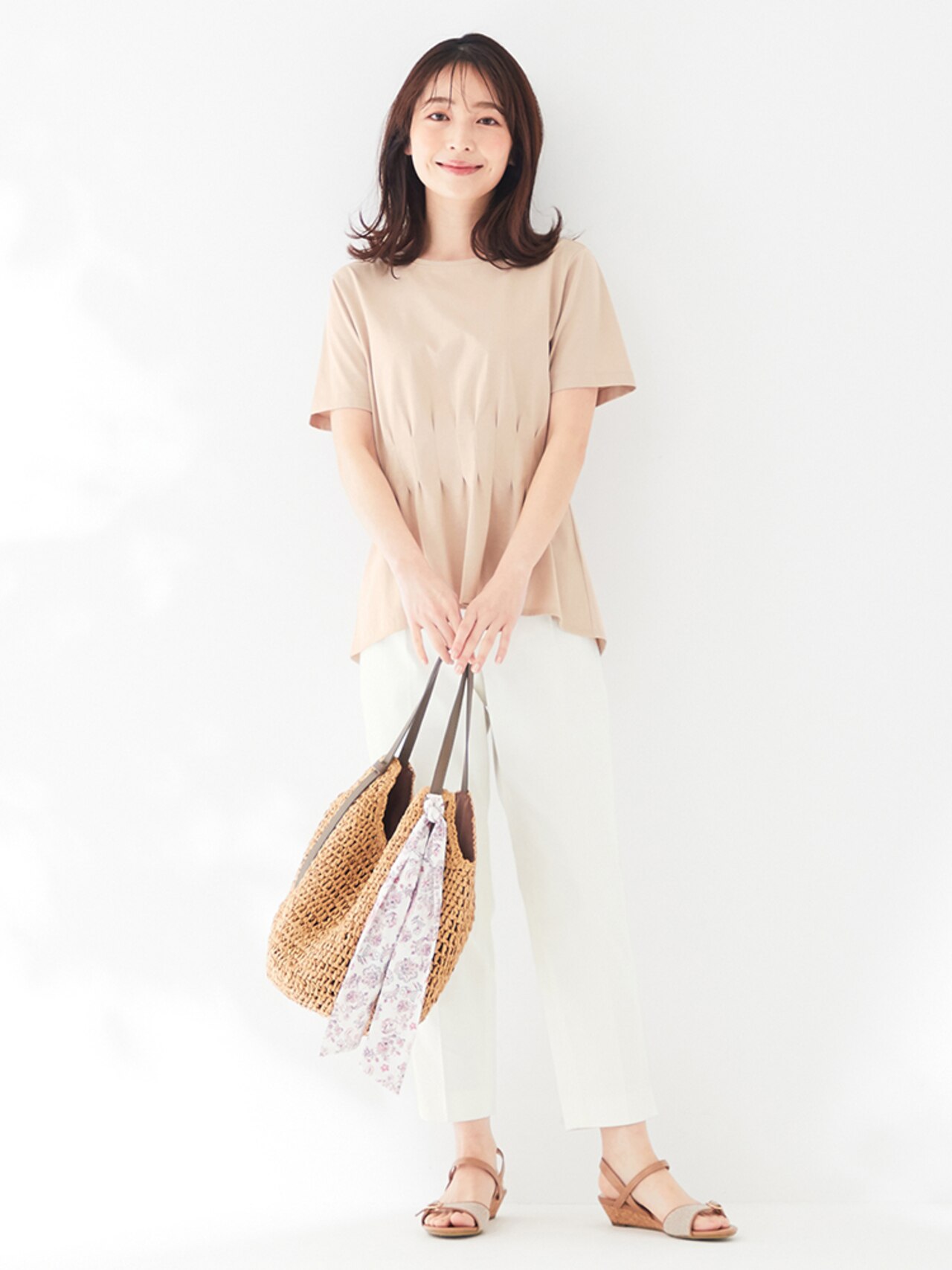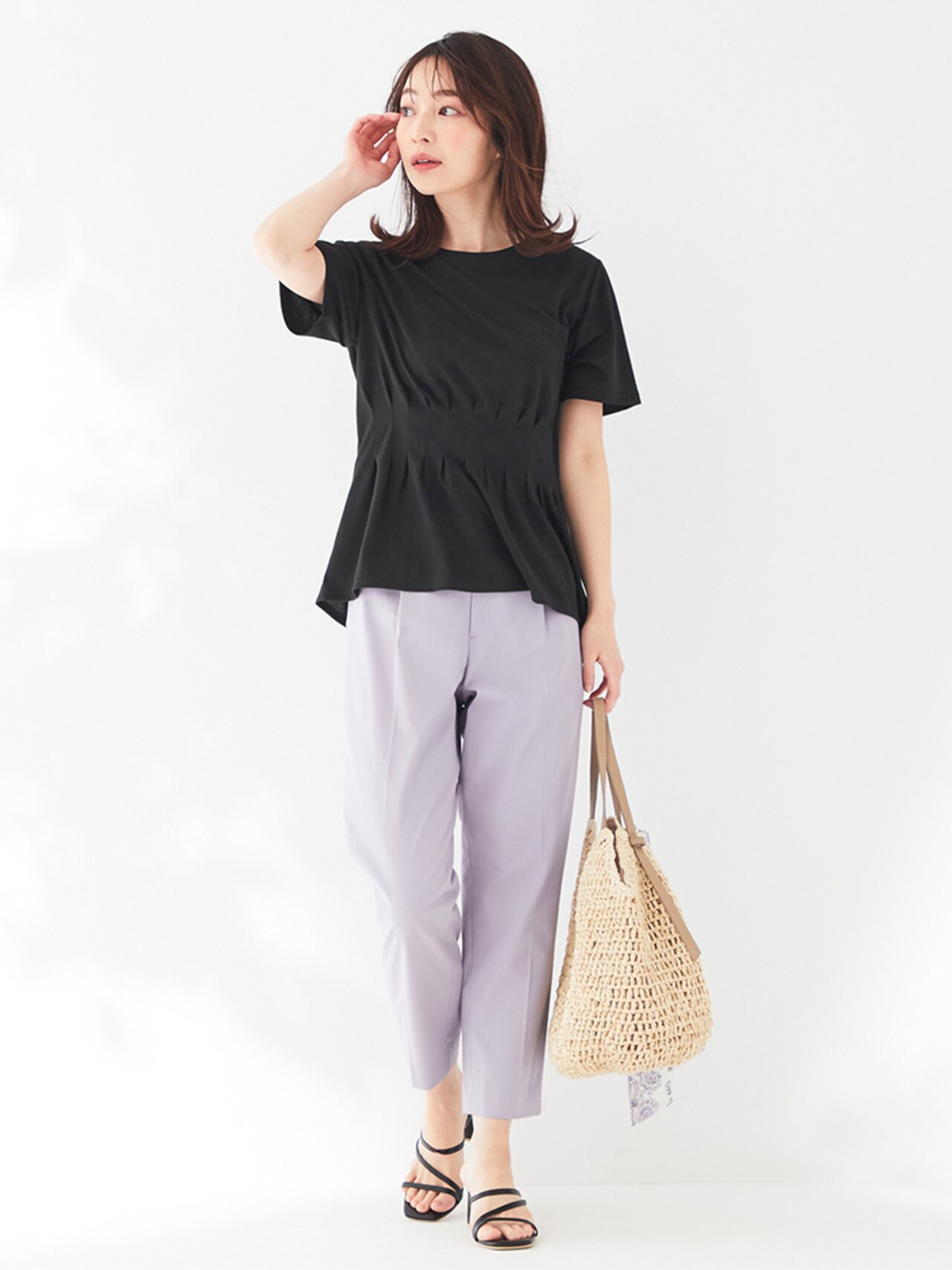 パンツ派必見のタックで表現したペプラムデザインの一枚。