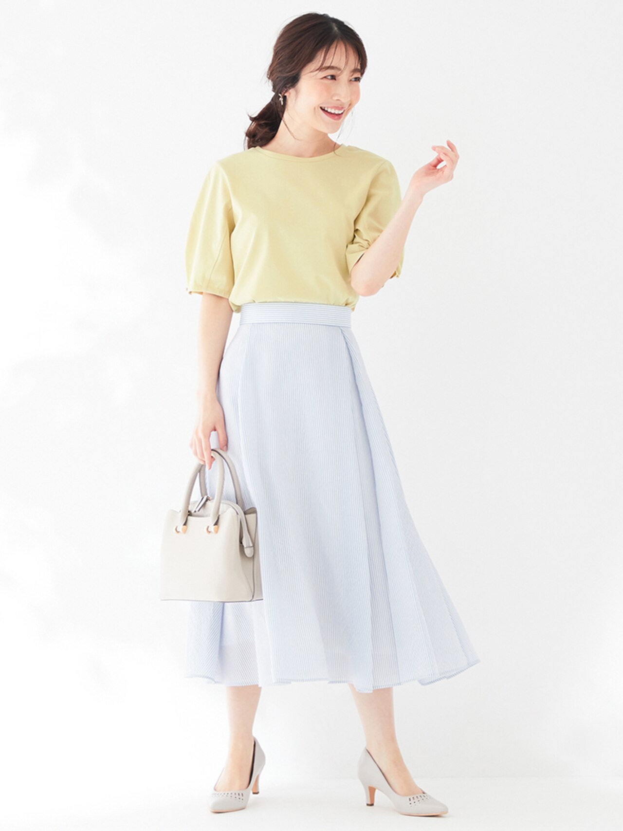 ボリューム感が可愛らしいアーモンドスリーブ型は、合わせるアイテムによってカジュアルにもキレイ目にも着こなせます。