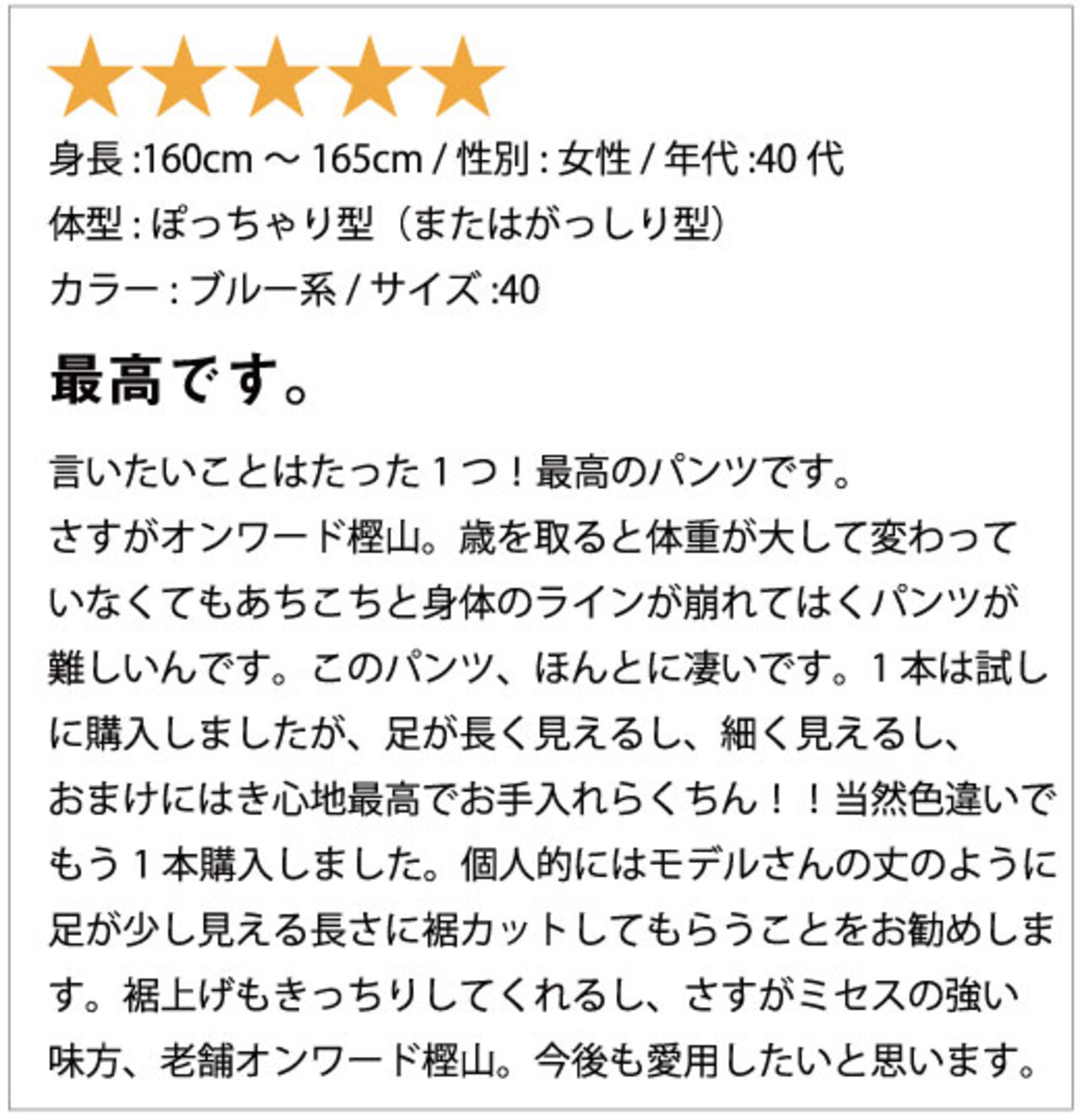 年中パンツ派も夏のパンツ選びは悩みのタネ。自由区からは夏のきれいめパンツとしてヒットを続けるパンツがランクイン!接触冷感の生地で熱がこもらず、吸湿速乾性にも優れ、さらりとしたはき心地が続きます。アクティブな夏には嬉しい防汚加工もプラス。さらに人気の秘密は、シルエットの美しさとサイズ展開が豊富なところ。XXS~XLまで幅広く対応可能です。