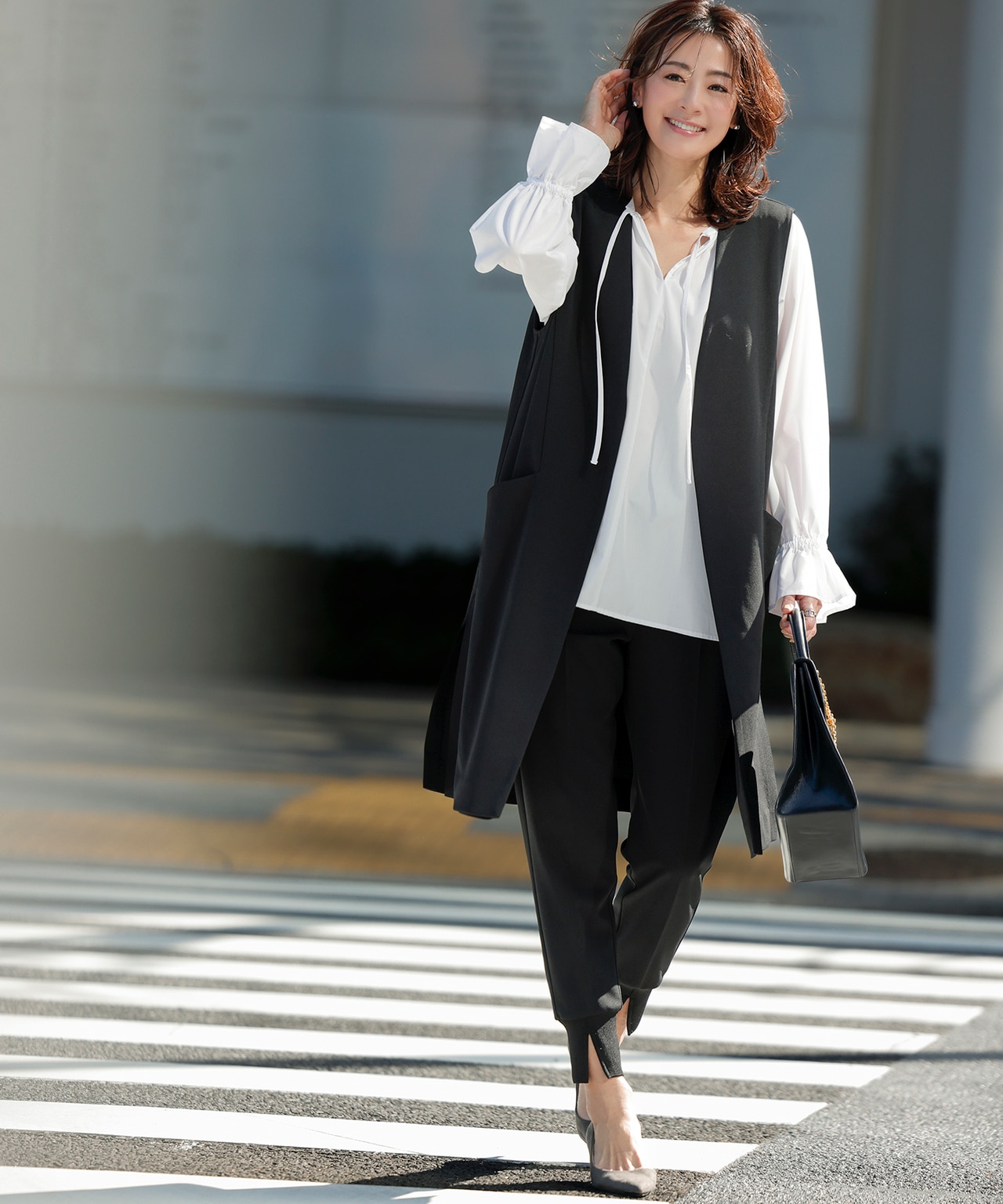 ブランドデビューから愛され続けるその名も「最愛ジョグパン」。たくさんのお客様の声から、サイズ感やウエスト調整の紐など、様々な改良を加えて進化し続ける【UNFILO】の看板商品。新たに加わった接触冷感加工のおかげで夏も心地よく愛せること間違いなし!ジョーゼットのジャージー素材はストレスフリーな着心地で、同じ素材のブラウスやジレも合わせて購入する方も多いというアイテムです。
