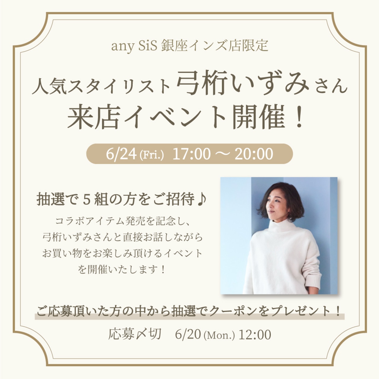 今回のコラボを記念して、「any SiS 銀座インズ店」にて弓桁いずみさんのご来店イベントが決定しました!