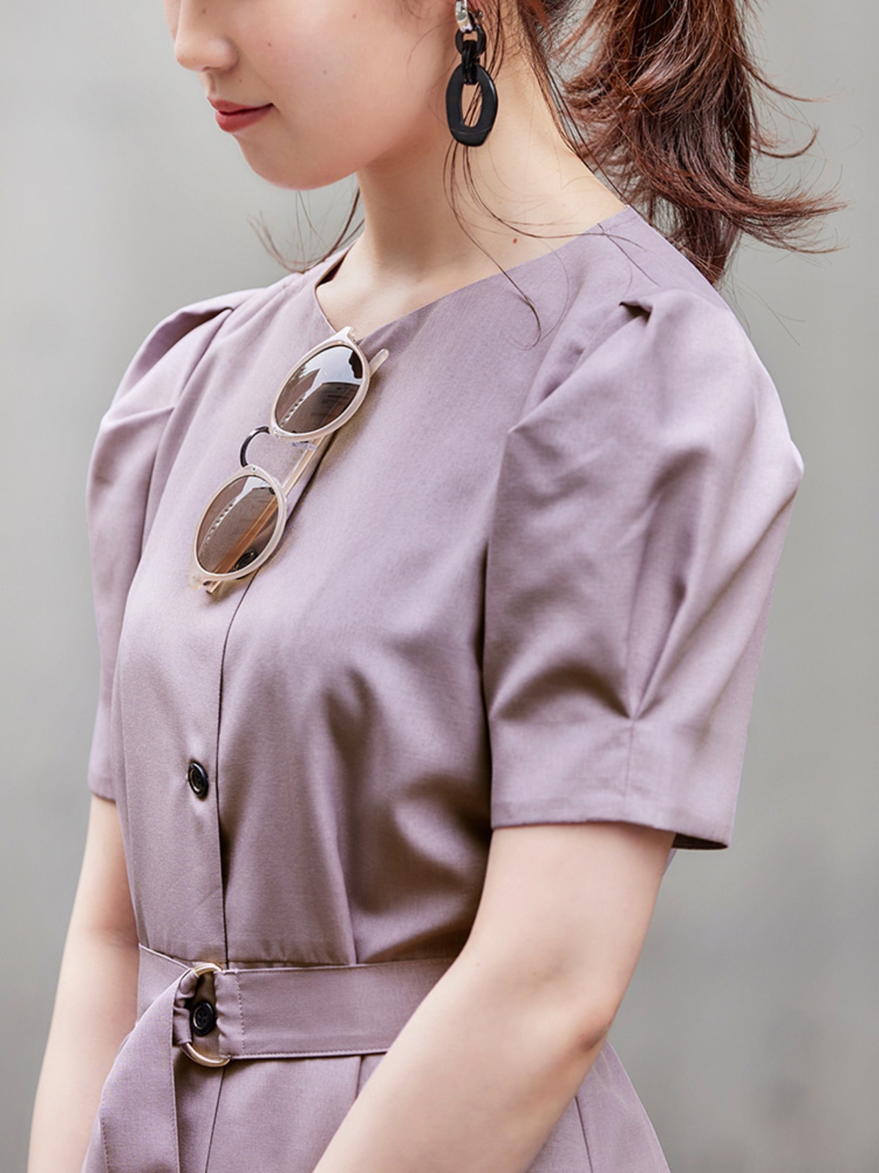 今年旬の盛袖ディテールが、おでかけ気分を盛り上げる!ウェーブさんには嬉しい目線を上げる効果もあり◎。ピンクよりも大人で甘さ控えめなラベンダーカラーは、大人にぴったりです。 -