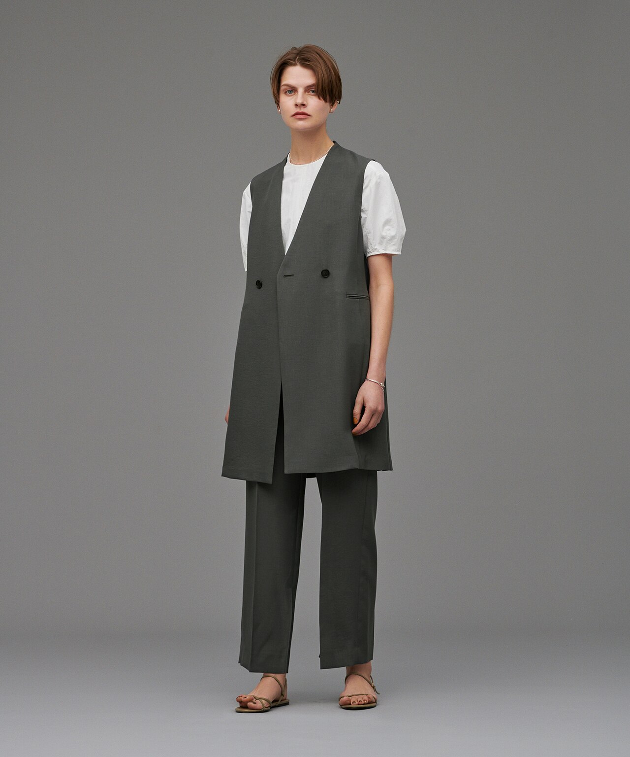 潔くノースリーブで着るのもとびっきりオシャレ!柄ボトムスなど、派手かな?!と思うアイテムの見える分量を調整できるので、トレンドアイテムを着るときにも心強い味方に。ジレを一点取り入れて、この夏のスタイリングを更新しましょう!