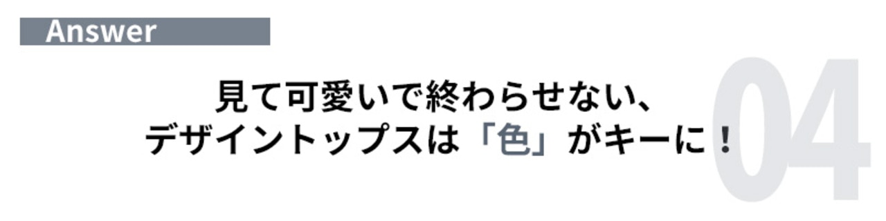 トレンド継続中でずっと注目を浴びているデザイントップスは、「着るだけで着映える」のはもう古い。カラー選びにこだわってコーディネートを更新して。