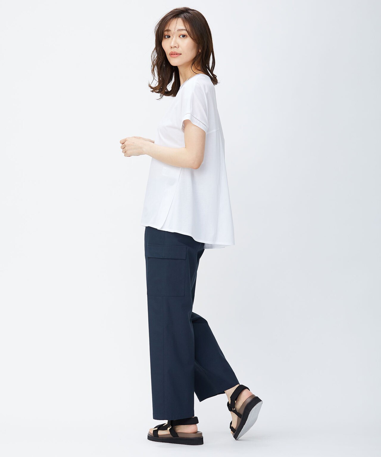 Tシャツの後ろ姿も自信をくれる、バックシャンデザイン。後ろの裾が長めになっているので、パンツスタイルで気になるお尻を隠してくれる。【イージーケア・接触冷感】プレーティングジャージーマーメイド カットソー【イージーケア・接触冷感】プレーティングジャージーマーメイド カットソーJ.PRESS LADIES¥11,990(税込)→¥7,150(税込)パンツ / シューズ -