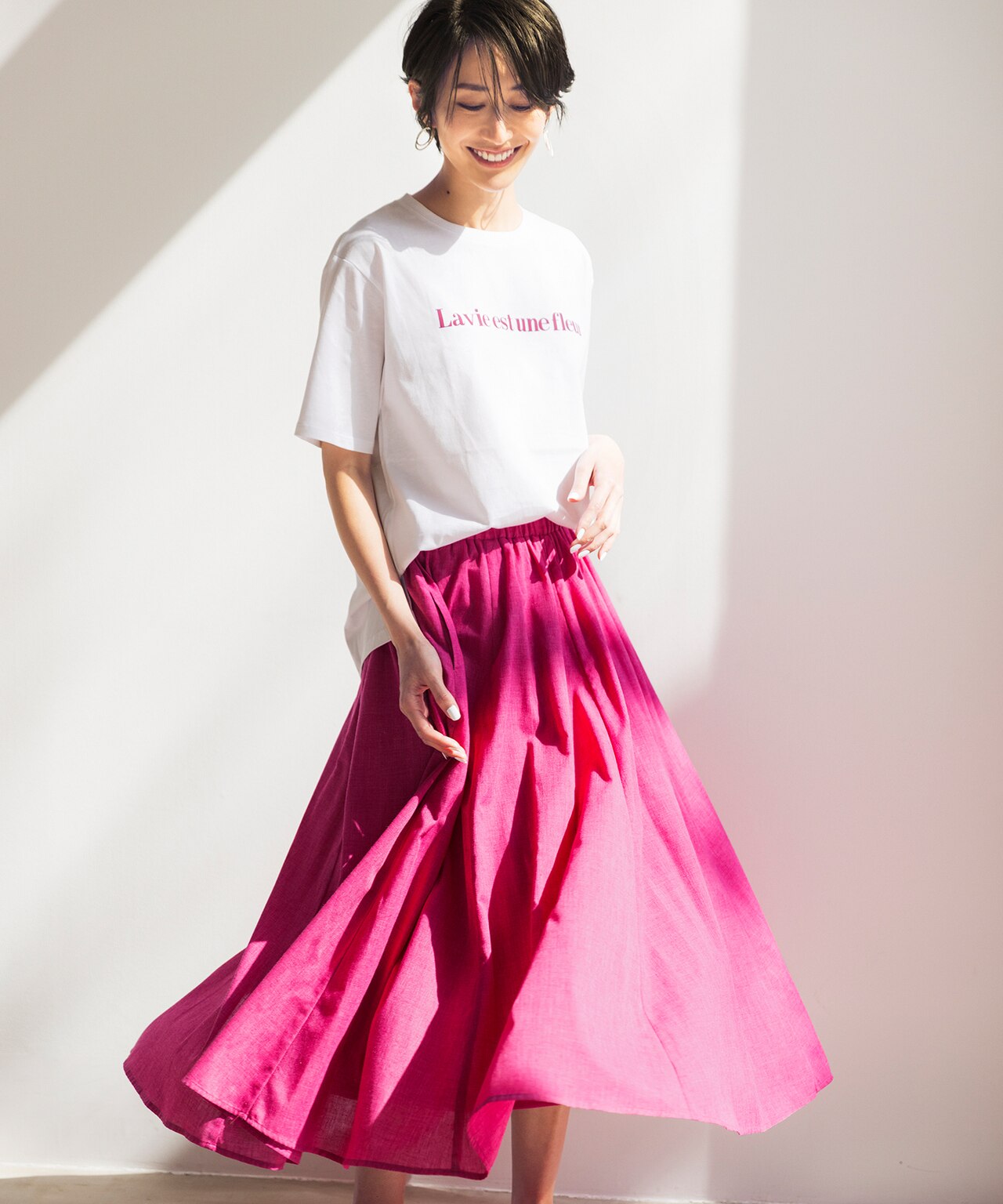 ピンクのロゴが顔回りを華やかに。スカートとロゴの色を合わせて、白Tときれい色なら「ラクして女っぽく」が簡単に!【接触冷感・UVケア】TCオーガビッツアソートプリントTシャツ【接触冷感・UVケア】TCオーガビッツアソートプリントTシャツany FAM¥2,500(税込)→¥1,750(税込)スカート / イヤリング
