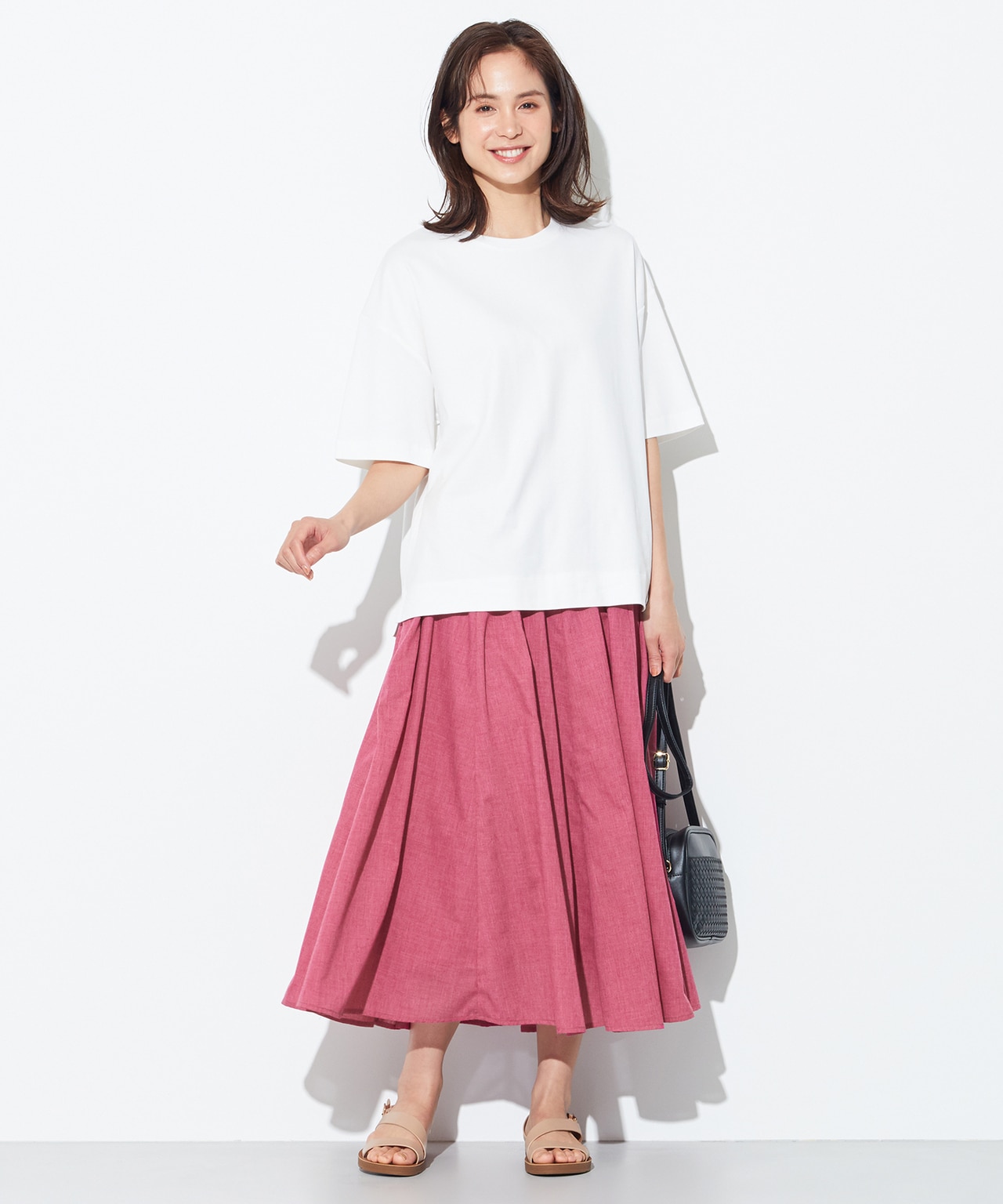 リラクシーなオーバーサイズが人気のTシャツ。カラースカートの甘さを、ゆったりとした白Tシャツが程よく中和。【抗菌・防臭】プレミアムベーシックボックスTシャツ【抗菌・防臭】プレミアムベーシックボックスTシャツany FAM¥2,999(税込)→¥2,098(税込)スカート / バッグ / シューズ