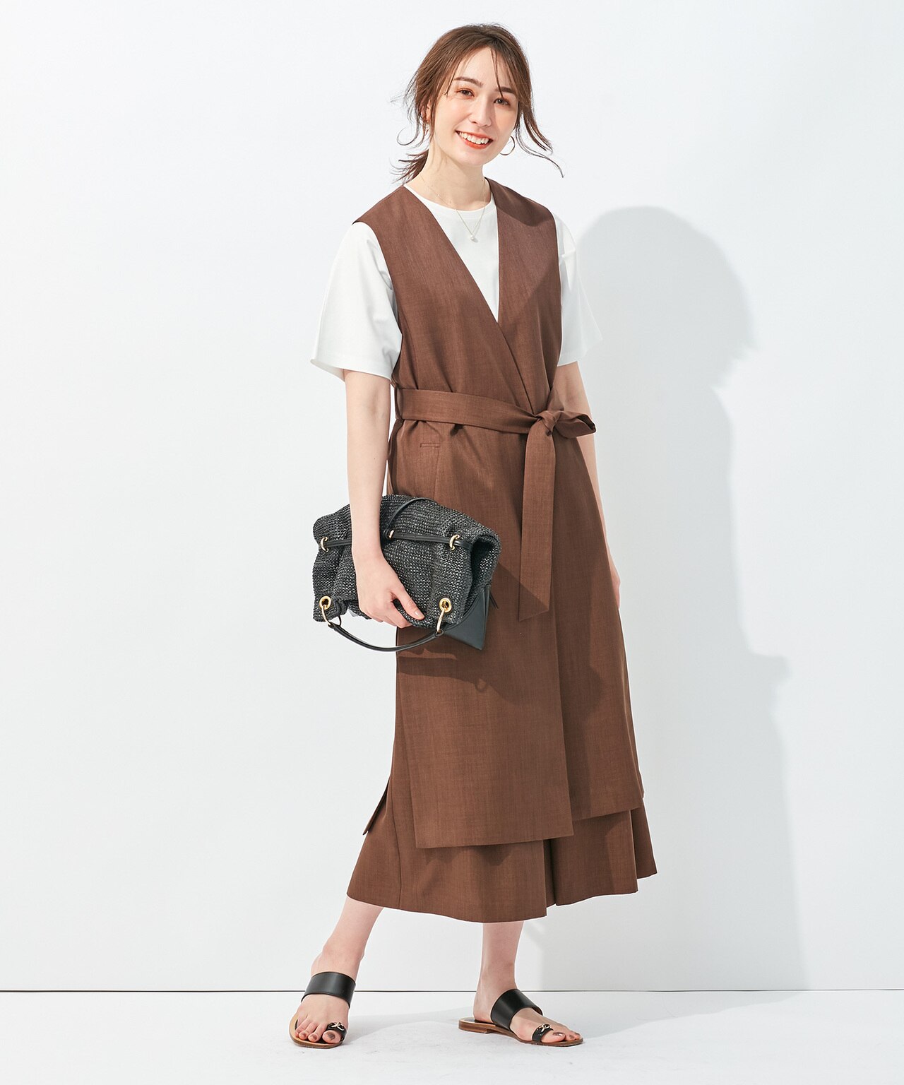 目が詰まって表面が滑らかなきれい見えTシャツ。旬のジレにインして、きちんと感を保ちつつ白Tのカジュアルな雰囲気も加わります。【洗える】ハイカウント Tシャツ【洗える】ハイカウント Tシャツ自由区¥13,970(税込)ジレ / スカート / ネックレス / バッグ -