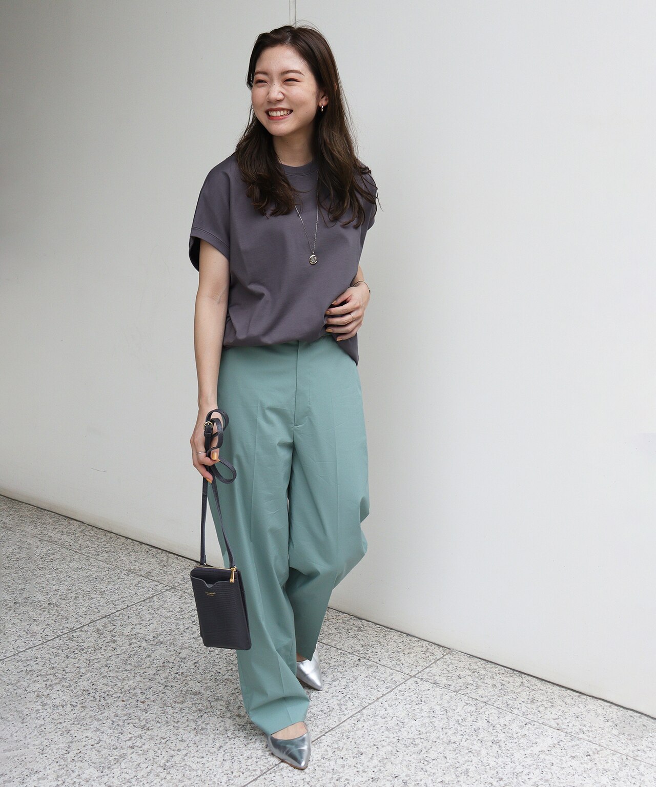 ニュアンスのあるグレーはぐっと雰囲気のでる1枚。カラーボトムと合わせてカジュアルなスタイリングに!(Staff:Morimitsu162cm)