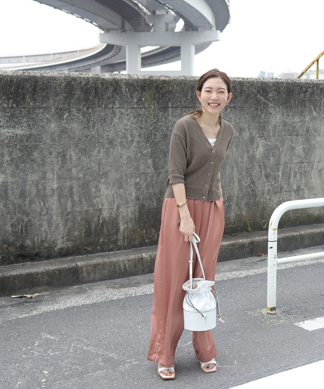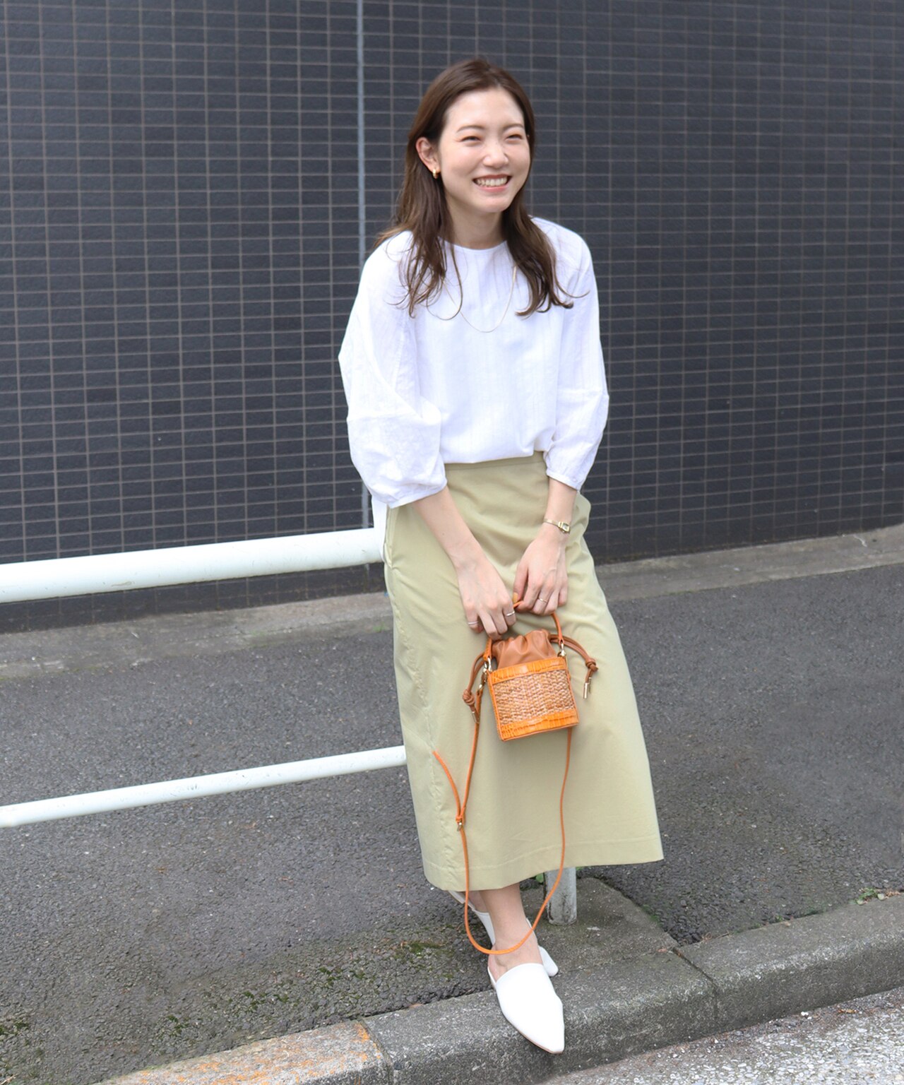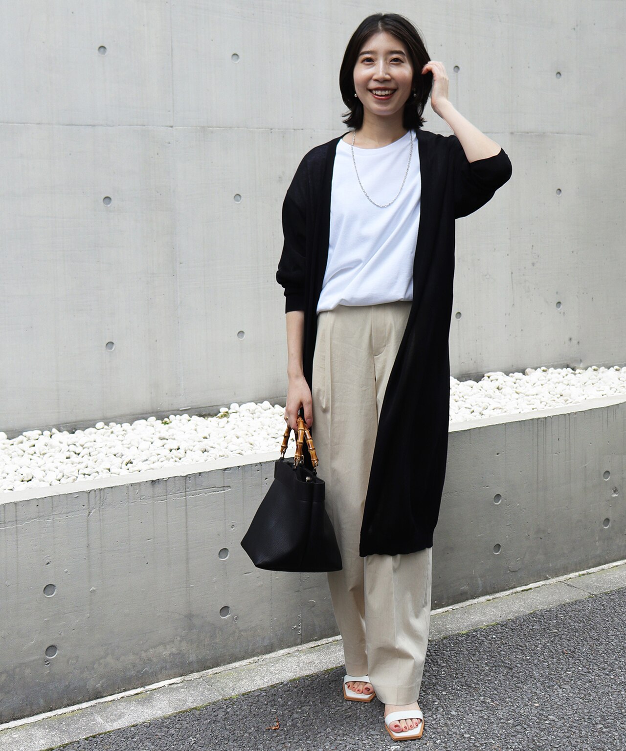 モノトーンスタイルには小物で色を差して!(Staff:Morimitsu162cm)
