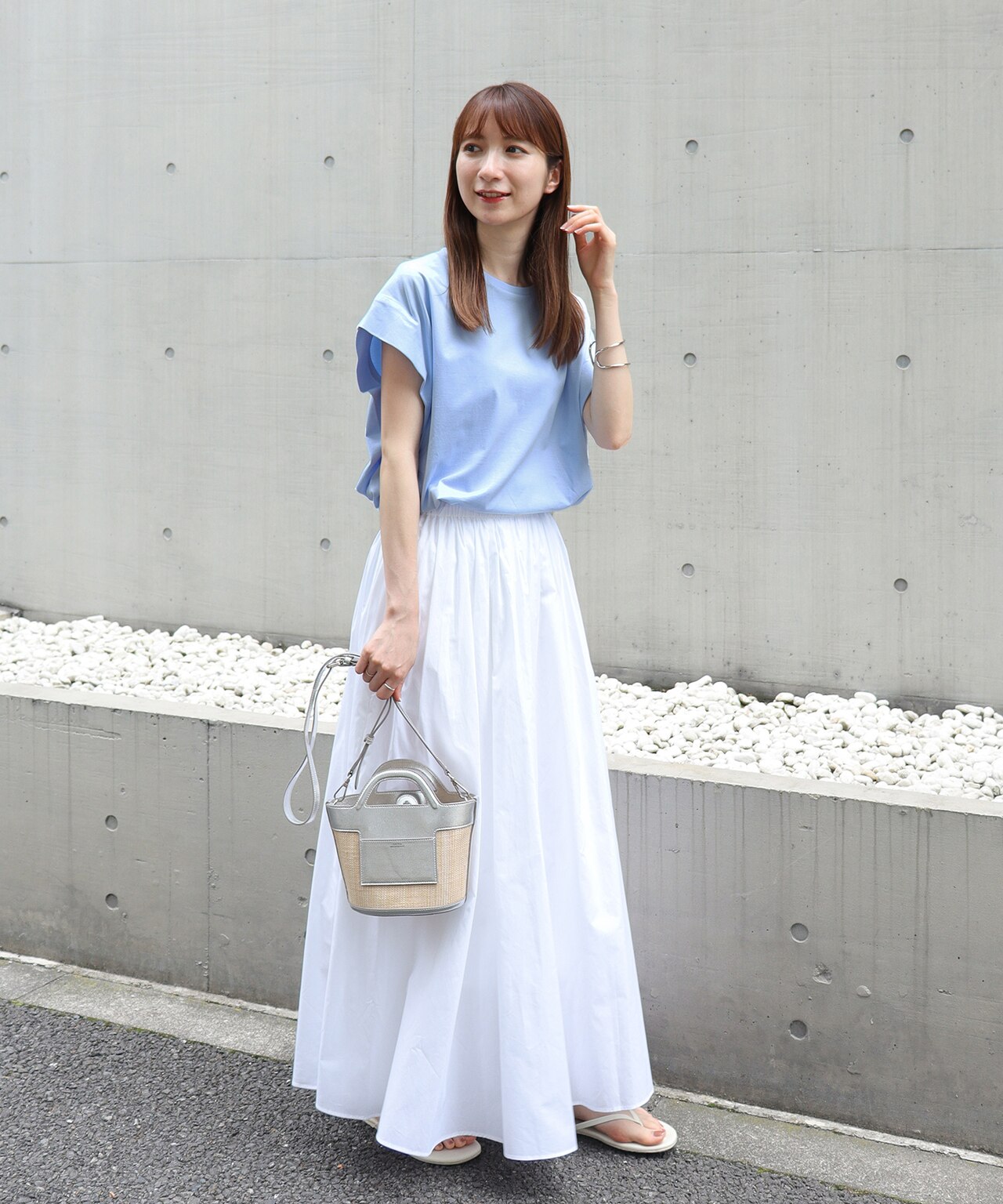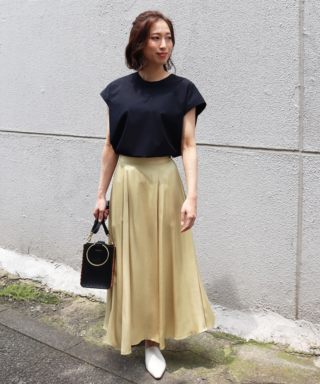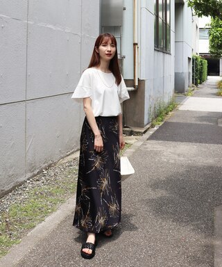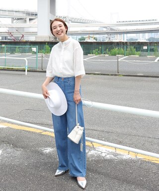 たっぷりとしたフレアスカートと合わせると夏らしい空気感が演出できます!(Staff:Kato 161cm)