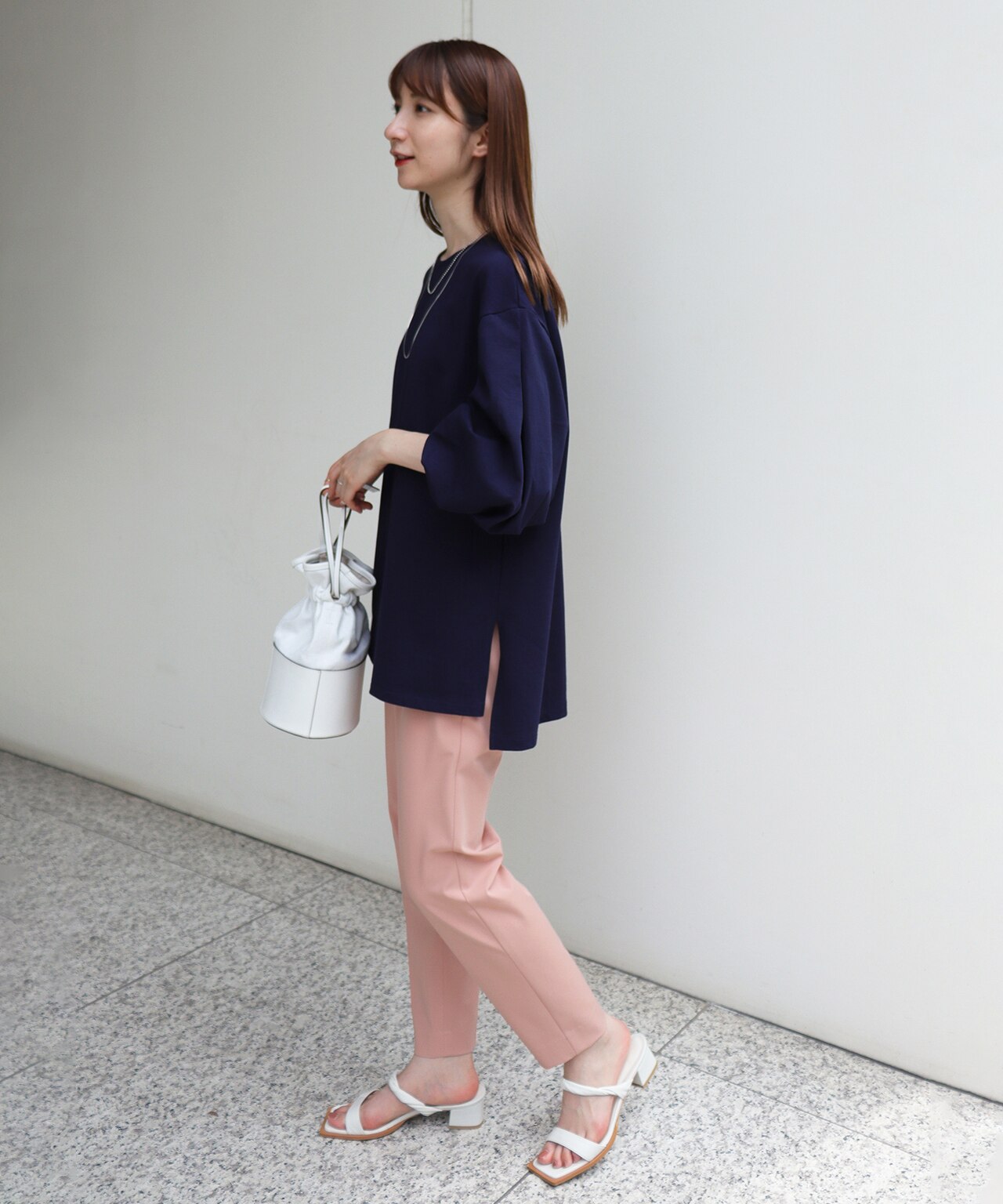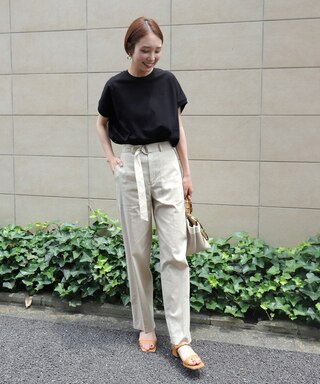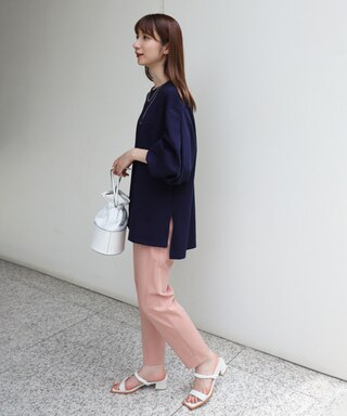 カラーボトムもブラウス合わせで上品な表情に。ボリュームスリーブで甘さをプラスして、カジュアルになりがちな夏のスタイルに変化をつけて!