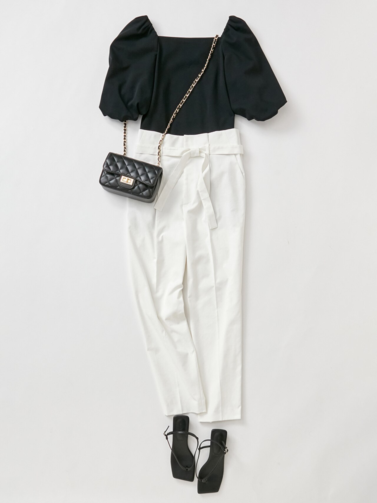 普段甘いデザインのトップスを着ない方でも今年らしいスタイルに挑戦できるモノトーン配色、おすすめです!